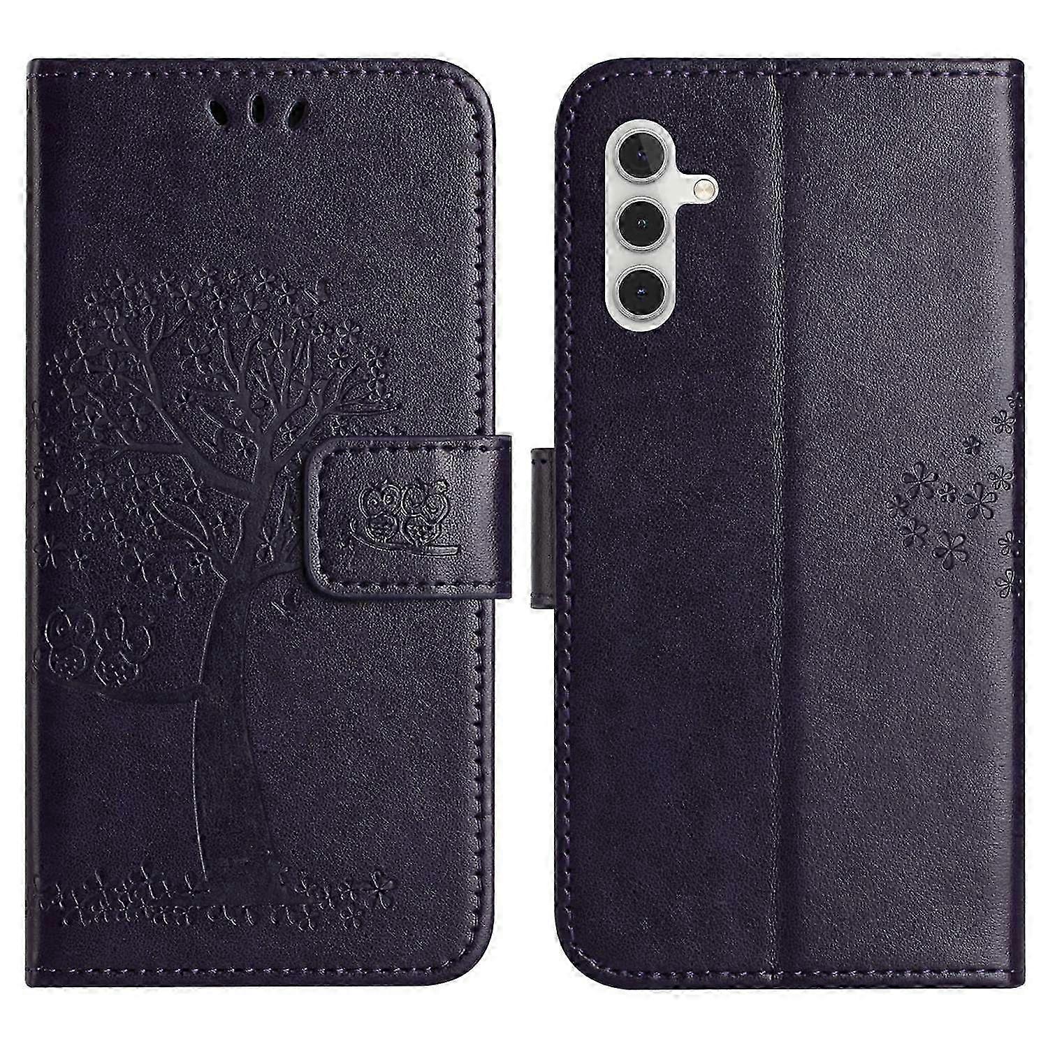 For Samsung Galaxy A56 5G Case PU Leather Owl Tree Imprinted Wallet Phone Cover - Dark Blue •【Fashionable Design】 Imprinted with an owl and tree pattern,this case is stylish and fashionable,making it a unique accessory for your device •【Durable Materials】 Made of quality PU leather and TPU,ensuring durability for long-term use and protection against daily wear and tear •【Practical Combination】 Combines your wallet and phone case into one handy and practical unit,allowing for easy organization of cards and cash •【Hands-Free Stand】 Supporting stand design allows for convenient hands-free use,perfect for watching movies or reading without needing to hold your phone •【Secure Magnetic Closure】 Ultra-strong magnetic clasp keeps all your valuables secure within the case,providing peace of mind •【Full Accessibility】 Precise cutouts ensure full access to ports,function buttons,speakers,and the camera,allowing for easy use of your device •【Daily Protection】 Provides protection against daily wear and tear,scratches,marks,and scrapes,keeping your phone in pristine condition •【Easy Portability】 Comes with a handy strap for easy carrying of your phone,making it convenient to take with you wherever you go Package included: •1 x Leather Phone Case •1 x Strap •Other items not included Note: Due to the light and screen setting difference, the item's color may be slightly different from the pictures. Please allow slight dimension difference due to different manual measurement.