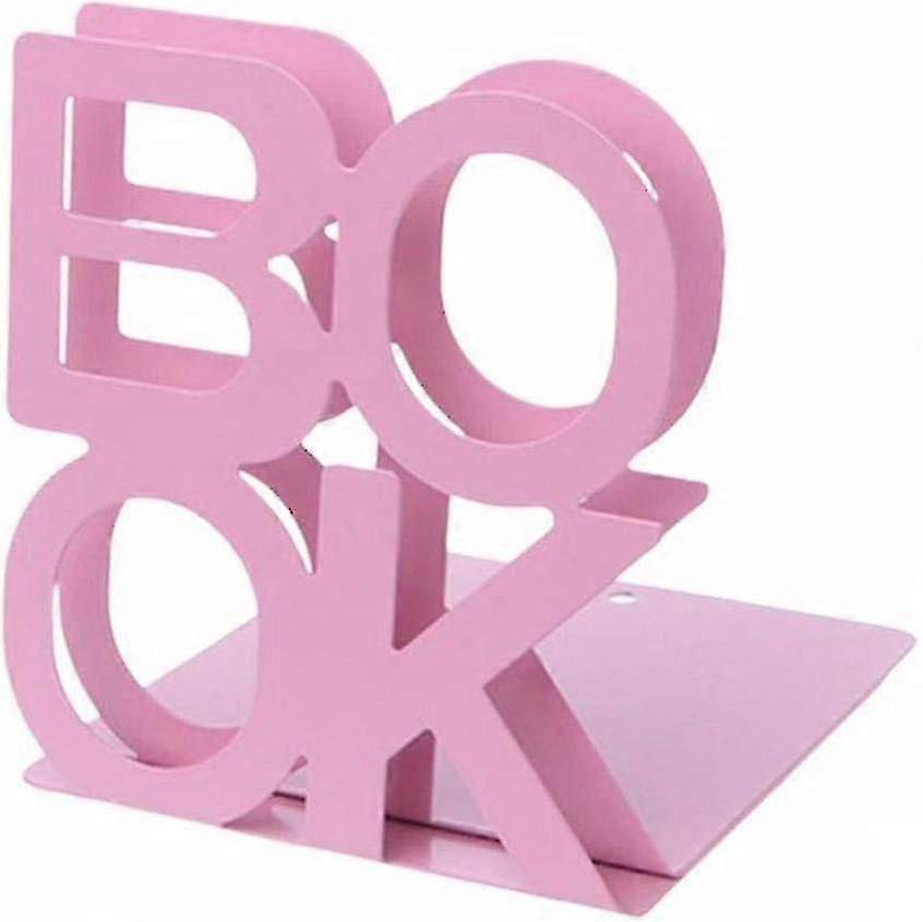 2026 1 Pair L-Shaped Non-Slip Metal Bookends for Desk Stand (Pink)_SZXM