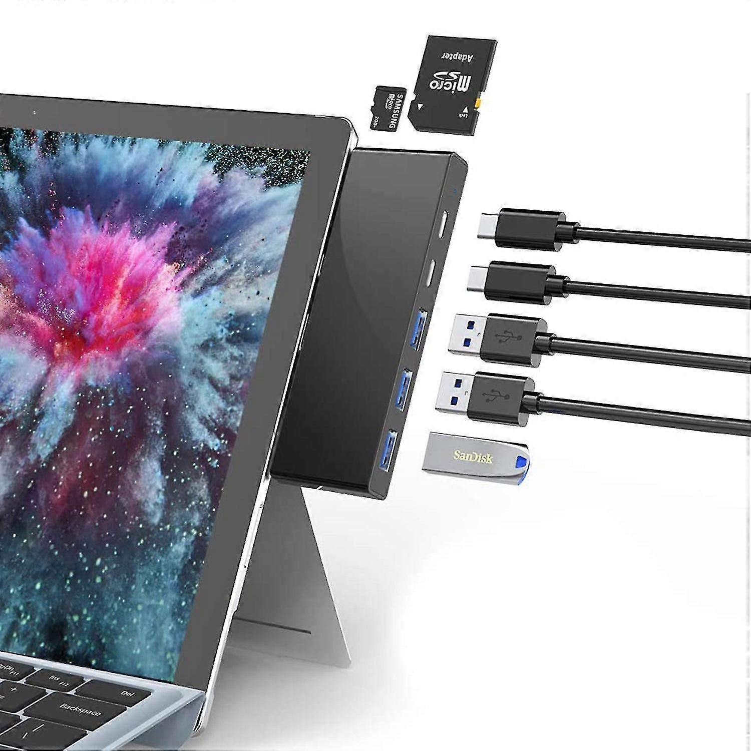 SurfacePro 7 Design:The Surface Pro 7 Hub turns the USB-A connection and USB C into seven ports (USB 3.0 port (5Gbps) X3, USB-C 60W PD charging port X1, USB-C data transfer port X1,SD and MicroSD Reader cards are compatible with Microsoft Surface 7.Note: Not compatible with Surface Go/Surface Pro 3,4,5,6 / Surface Pro X.?60WUSB-C charging power supply: Supports USB-C direct charging.Allows charging Microsoft Surface Pro 7 while using a USB-C hub at the same time.SD/Micro SD Card Reader: supports reading both TF and SD cards at the same time.Compatible with SDXC, SDHC, SD, MMC, RS-MMC, TF, Micro SDXC, Micro SD, Micro SDHC, Mini SD, UHS-I card.Supports Windows, Mac and Android OS.Windows 2000 / ME/XP/Vista / 7/8/10 / Mac OS 10.x system. Note: Due to the light and screen setting difference, the item's color may be slightly different from the pictures. Please allow slight dimension difference due to different manual measurement.