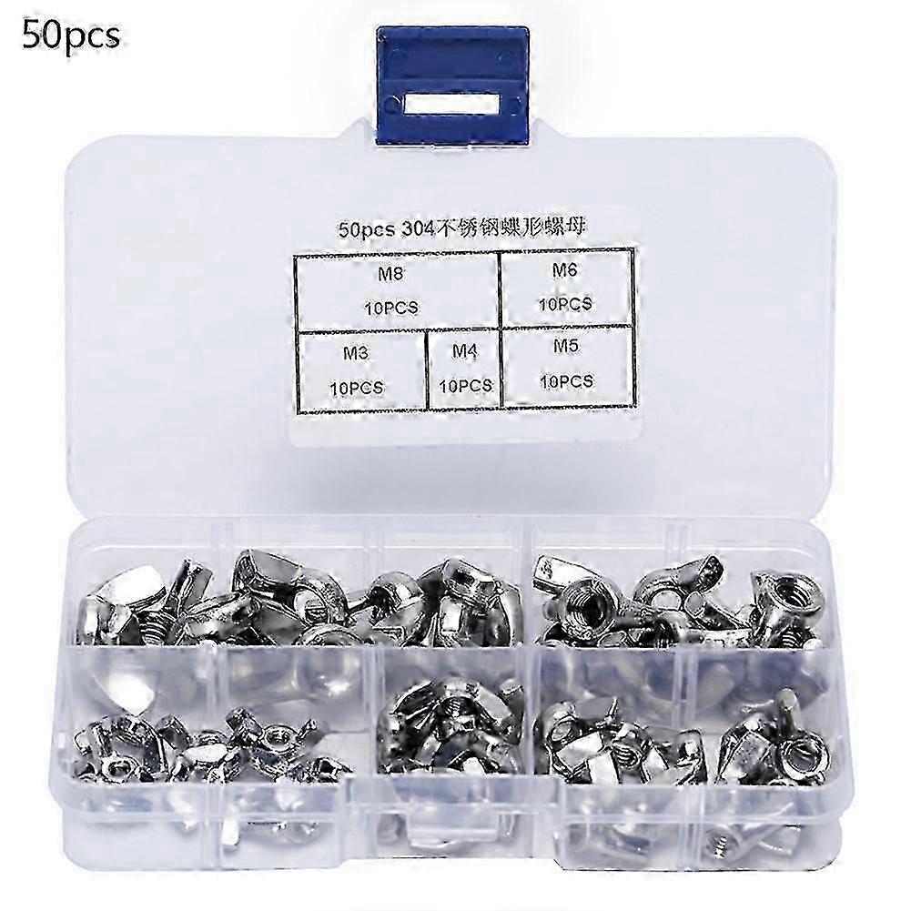 50 Pcs Butterfly Nut Stainless Steel Wing Nut Hand Tighten M3 M4 M5 M6 M8 Fastener Kit 26-27s