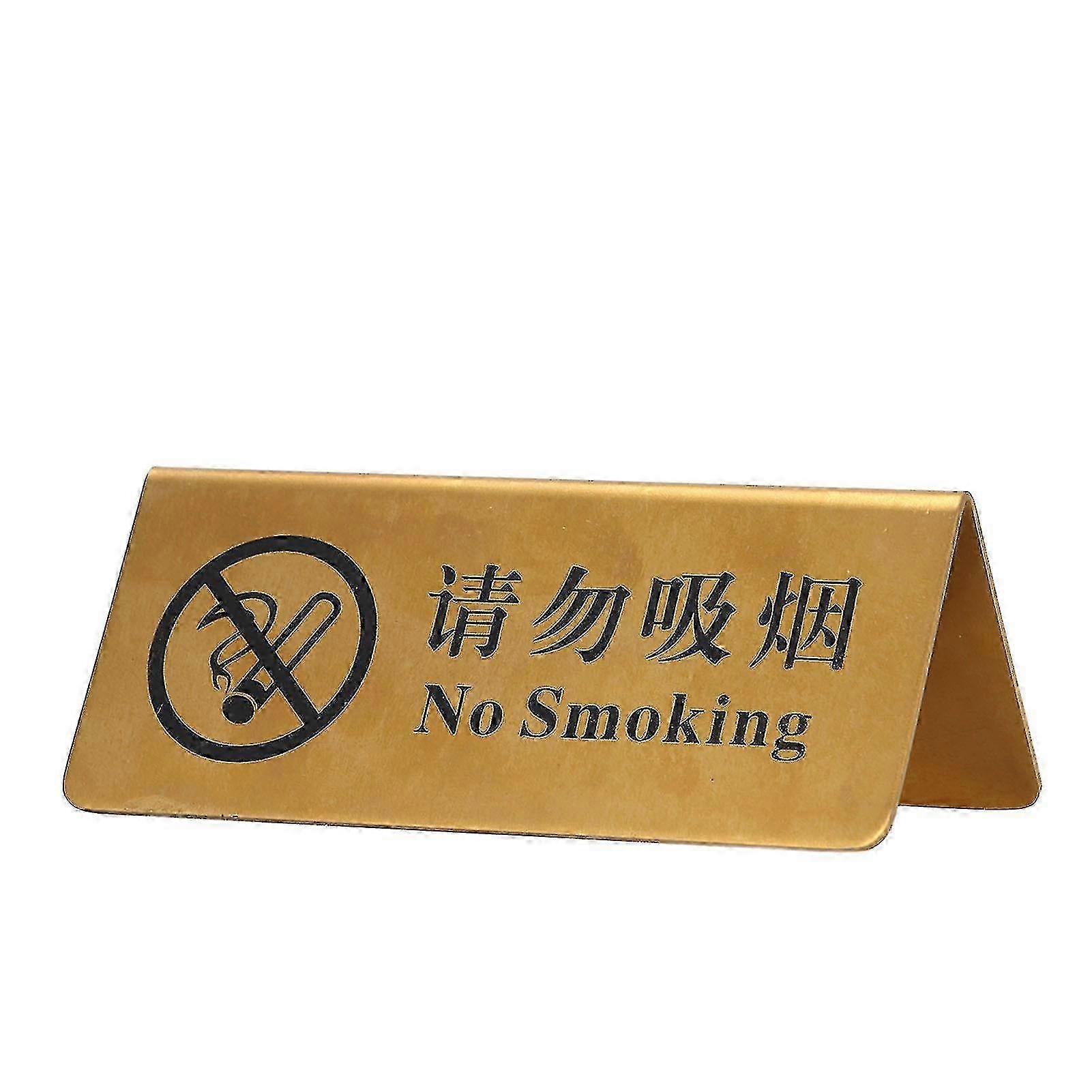 2026 Metal Table Top Sign Strong Stainless Steel Double Sided Space Saving Gold Tabletop For Party Wedding Hotel No Smoking In Chinese And English_Sep