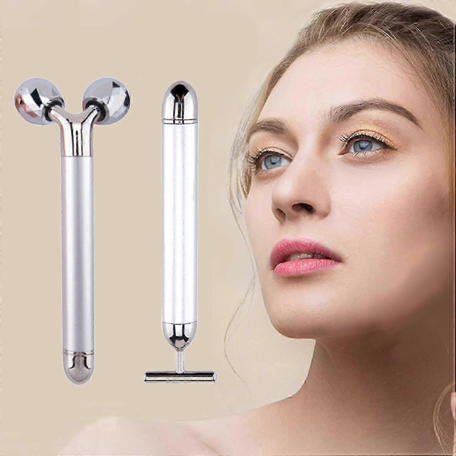 2-In-1 multifunction:The face massager kit is magical with two types of Massage devices. One is 3D roller face massager, the other is T shape electric energy massage device. Enjoy your skin care time with them.New technique:3D Roller Electric Sonic Energy massage device is so wonderful with surface diamond-grade cut small diamond shape and unique 3D V type design to fit the whole body tightening curve. T shape head is designed for 6000 vibrations per/min and is good at tightening skin.Relaxed beauty yourself:Daily use of the massage device will make your face and skin look healthier and younger by reducing wrinkles and removing dark circles. Moreover, it will increase skin metabolism through stimulating your blood circulation,resulting in an instant face lift. Also, it can combine with skin care products and promote better absorption.360 waterproof design:You can enjoy it while showering due to the special 360waterproof design. Moreover, the T shape and 3D roller massager allows you to use the product on any part of your body from the angle that you prefer. Whats more, you can use the electric massager whenever and wherever because of its portable design and the included delicate storage bag.Note:Requires one AA battery (not included ), electric power driven, stable performance,good circulation. Besides, manual control twist On/Off . Note: Due to the light and screen setting difference, the item's color may be slightly different from the pictures. Please allow slight dimension difference due to different manual measurement.