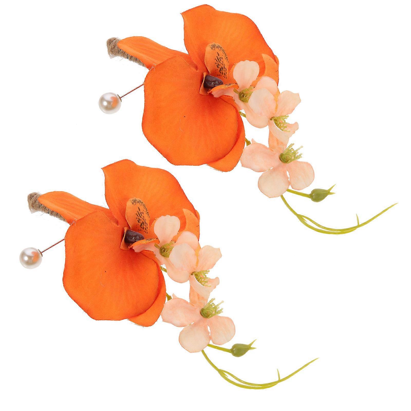 Wedding Boutonniere Artificial Flowers for Bride Groom 2Pcs Orange Silk
