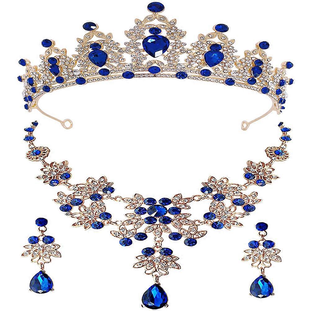 Bridal Jewelry Set with Tiara Earrings Necklace in Red for Decor Made of Zinc Alloy and Rhinestone