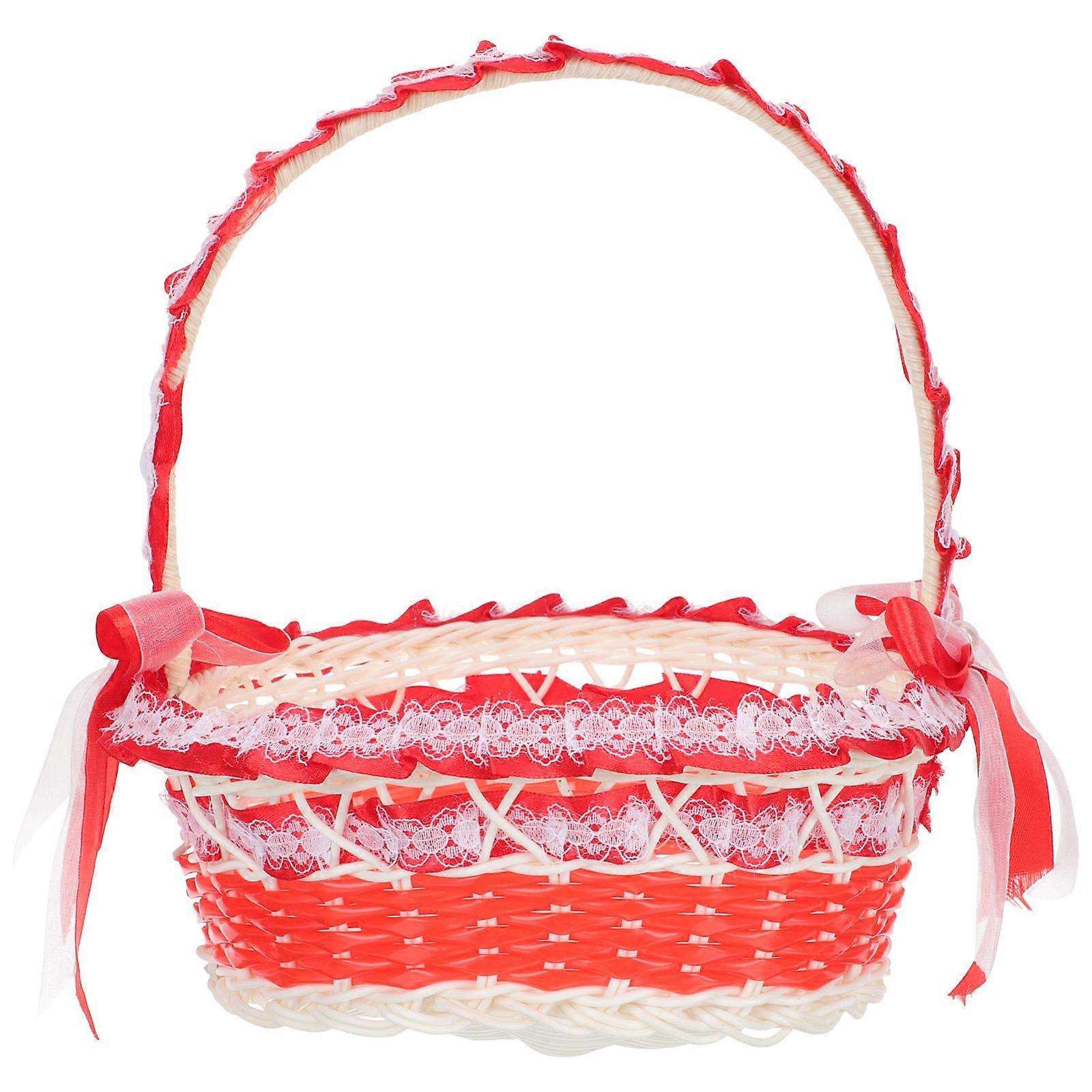 Red Flower Girl Basket Wedding Party Treats Basket for Storage Use