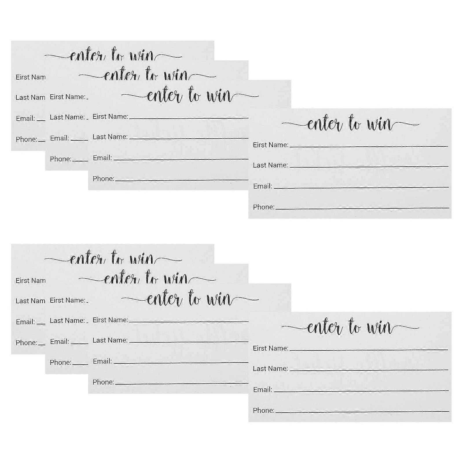 Whether you're hosting a small event or a large-scale fundraiser, these enter to are the perfect way to ensure that your guests have a chance to rewards. With their easy-to-use design, these cards are ideal for collecting participants' names events, contests, trade show and events, contests, auctions, and festivals. Features -Color:Multi -Material:Paper -Size:9.00X5.00X0.10cm/3.54X1.97X0.04in -These raffle cards are ideal for any event, from corporate events to school functions. -Your guests can use pens, markers, or pencils to quickly enter their information for a chance to win. -These enter to are a great way to add excitement to any event. -Participants can fold the drawing entry slips to ensure a fair and impartial draw. -These cards are perfect for any event where prizes are being given away. Package list: Cards