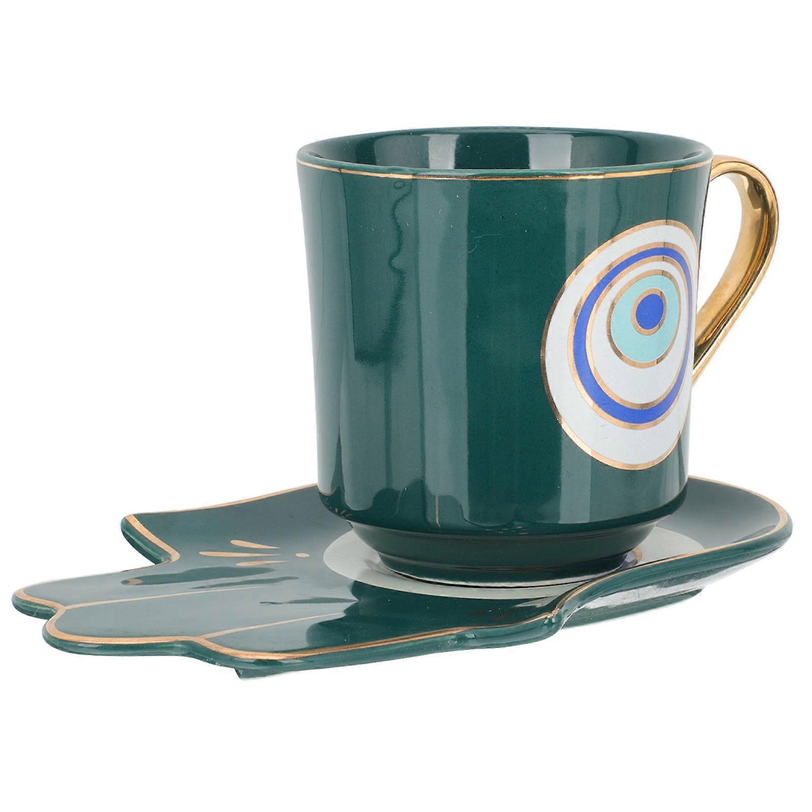 Coffee Mug Set With Saucer For Afternoon Tea And Home Use Dark Green Ceramic Beverage Container 1 Set