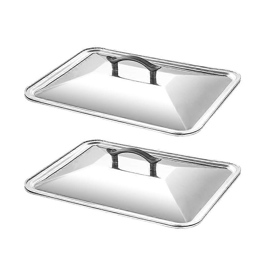 Rectangle Food Tray Lid Stainless Steel Protective Cover for Kitchen 2Pcs