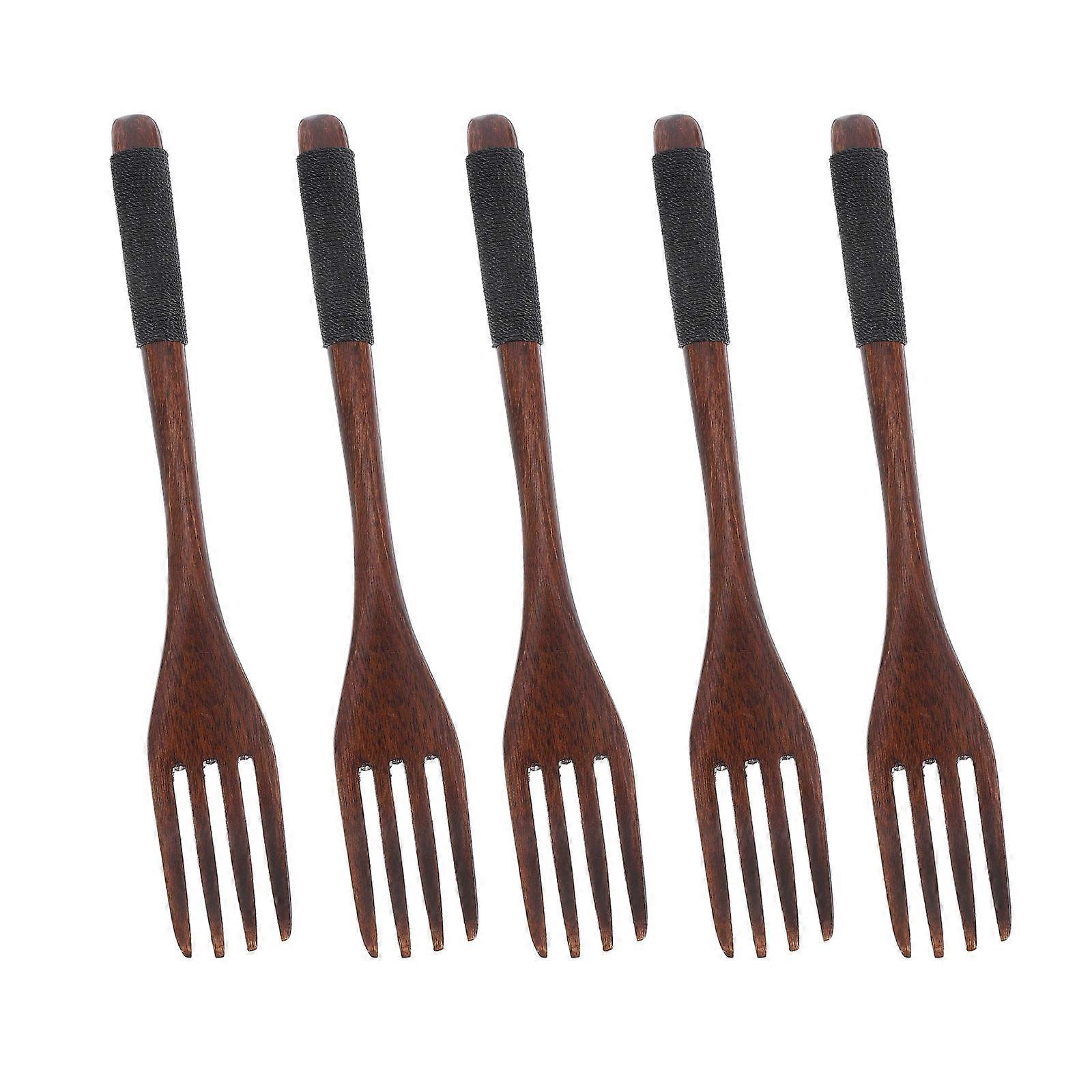 Wooden Children Forks for Eating 5Pcs Japanese Style Dinner Utensils Set