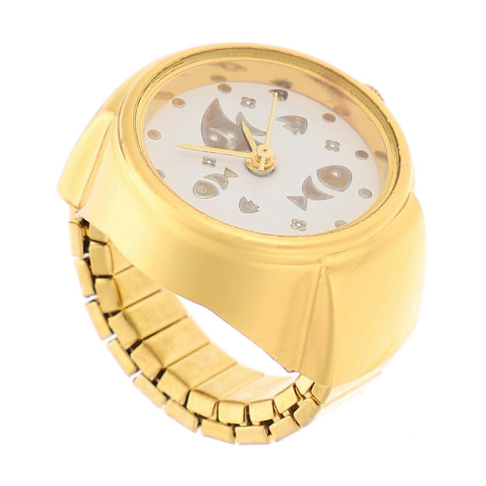 Watch Rings For Women Finger Round Decorative Ring Watch Golden Daily Use Time Display 1Set