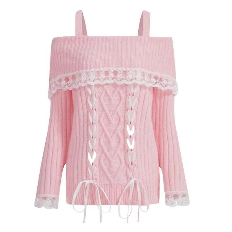 Cute Harajuku Off-shoulder Lace Trim Sweater Kawaii Y2k Vintage Long Sleeve