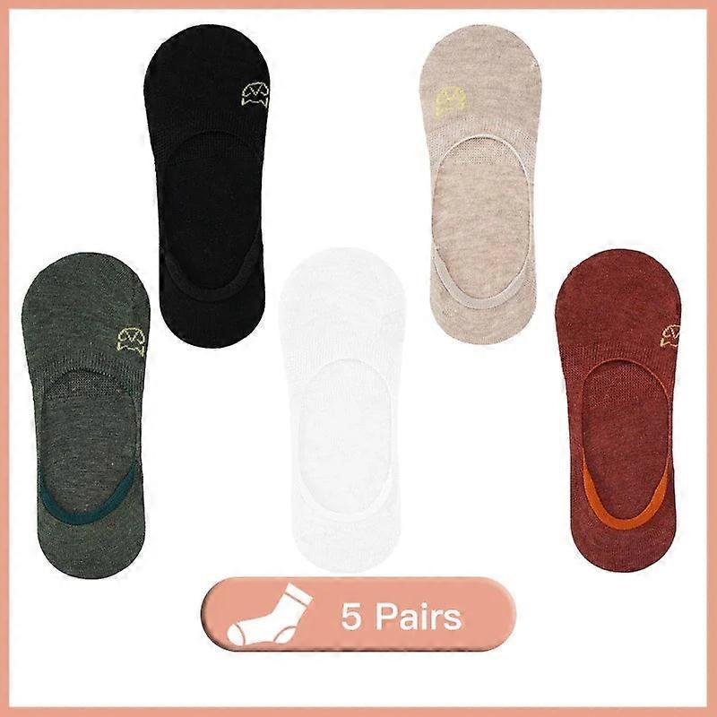 5 Pairs Women's Summer No-show Non-slip Sock Set – Thin, Silicone Grip, Cute