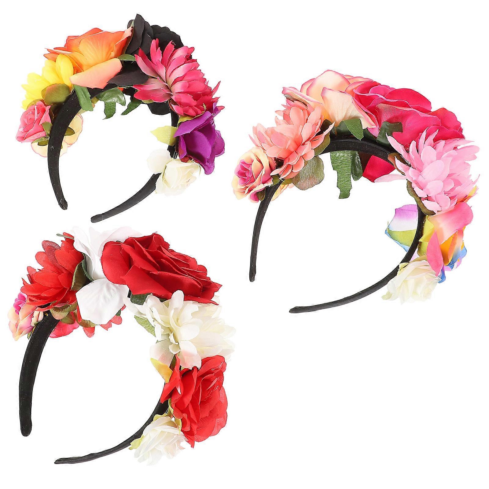 Halloween Floral Headbands for Party Use 12Pcs Mexican Flower Headpieces
