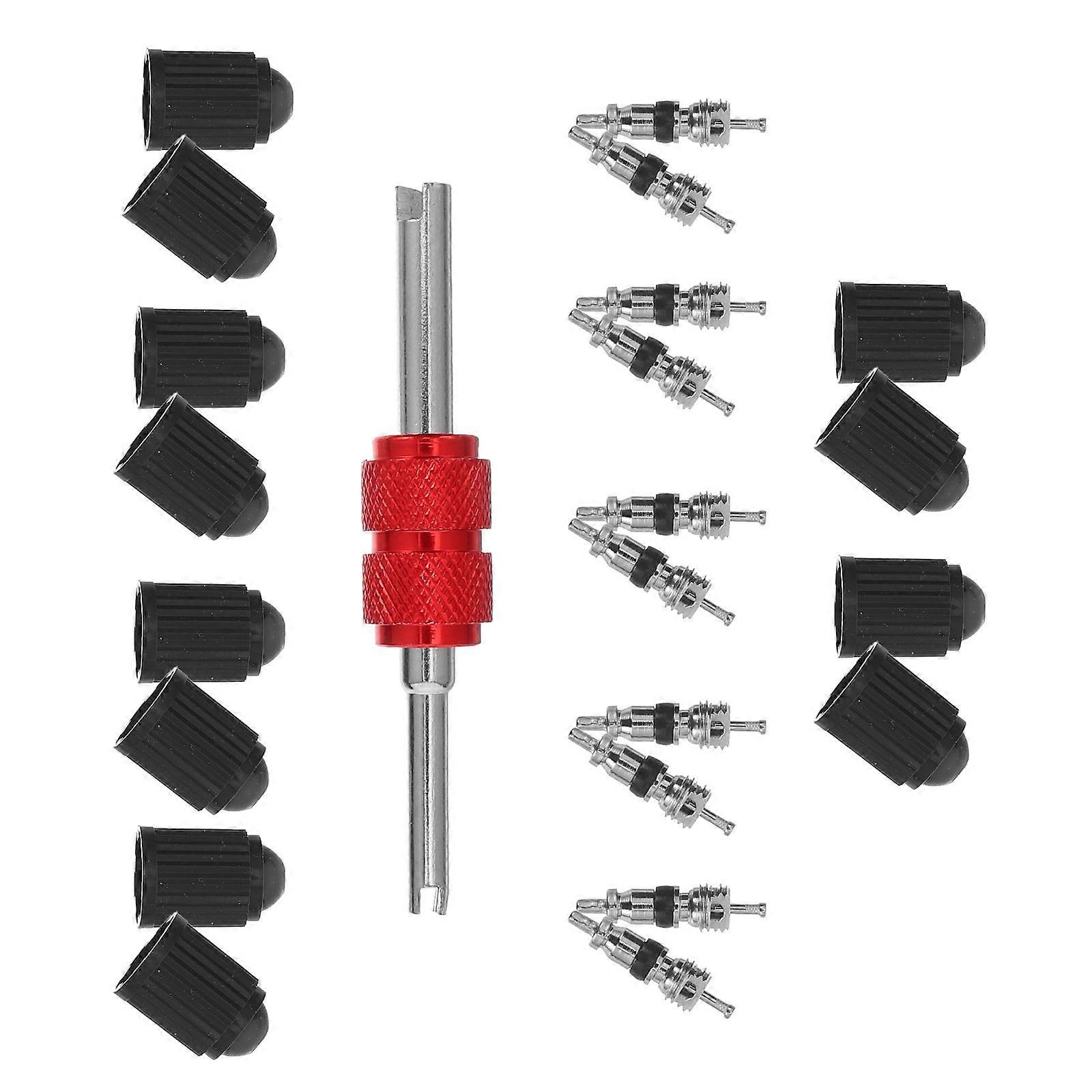 Black Tire Valve Caps and Valve Core Tool Kit for Cars and Bikes with PP and Zinc Alloy Components