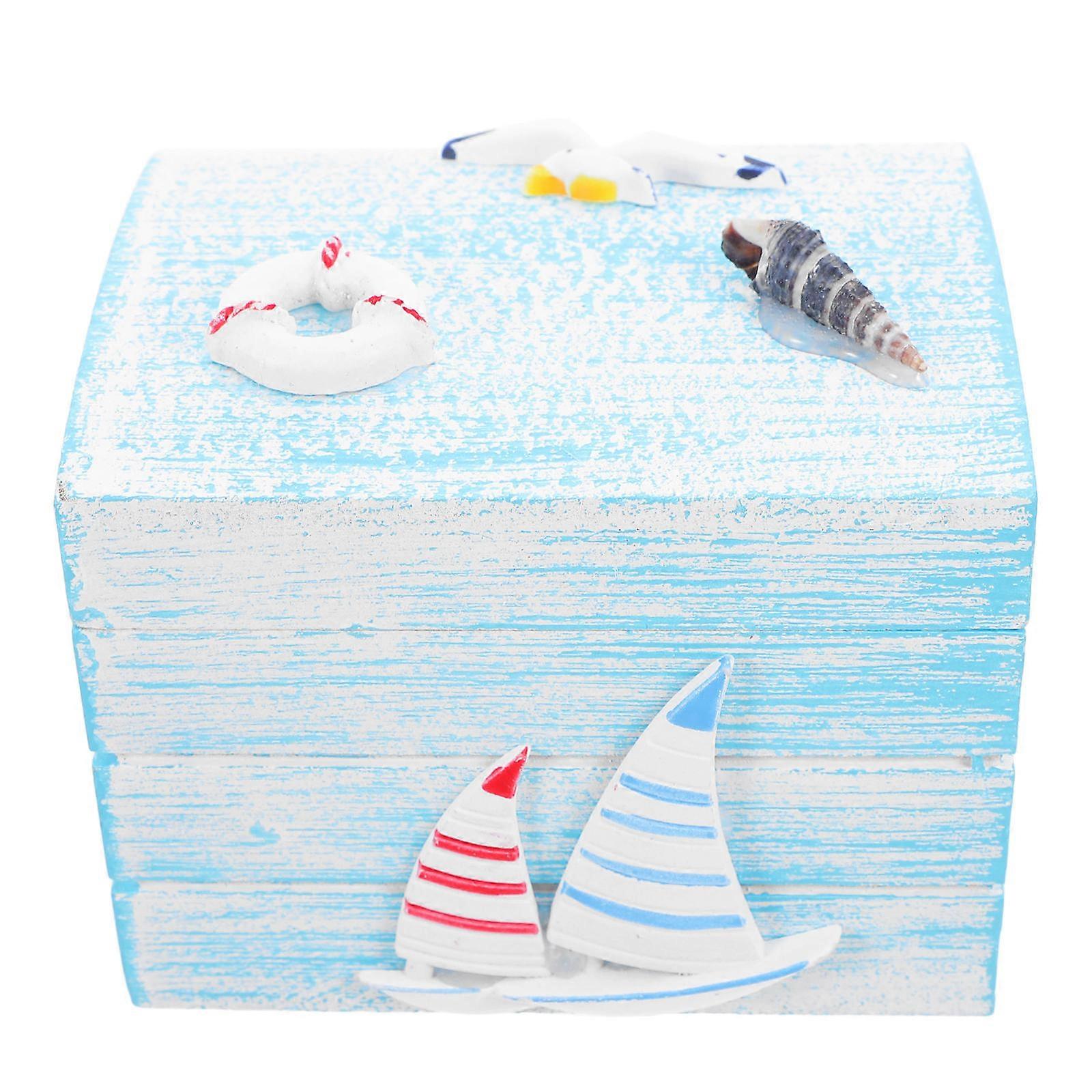 This small wooden chest is both functional and stylish, featuring a timeless design that blends retro charm with modern practicality. Ideal for storing jewelry, trinkets, or other small items, it serves as a decorative container that enhances your space with its unique ocean-inspired details and rustic craftsmanship. Features - Color: Blue 2 -Material:Wood - Size: 10.00X8.00X7.50cm/3.93X3.14X2.95in -Wooden treasure chest: the box's retro ocean design adds a vintage nautical touch to your decor - : perfect for storing small items, this box helps keep your belongings organized and easily accessible -Small treasure box: each box is made with attention to detail, making it a unique piece of art -Lasting: constructed from wood, this box is built to last and maintain its shape over time -Stylish and useful: this decorative storage box enhances your home decor while providing practical storage solutions Package list: 1 x small treasure box