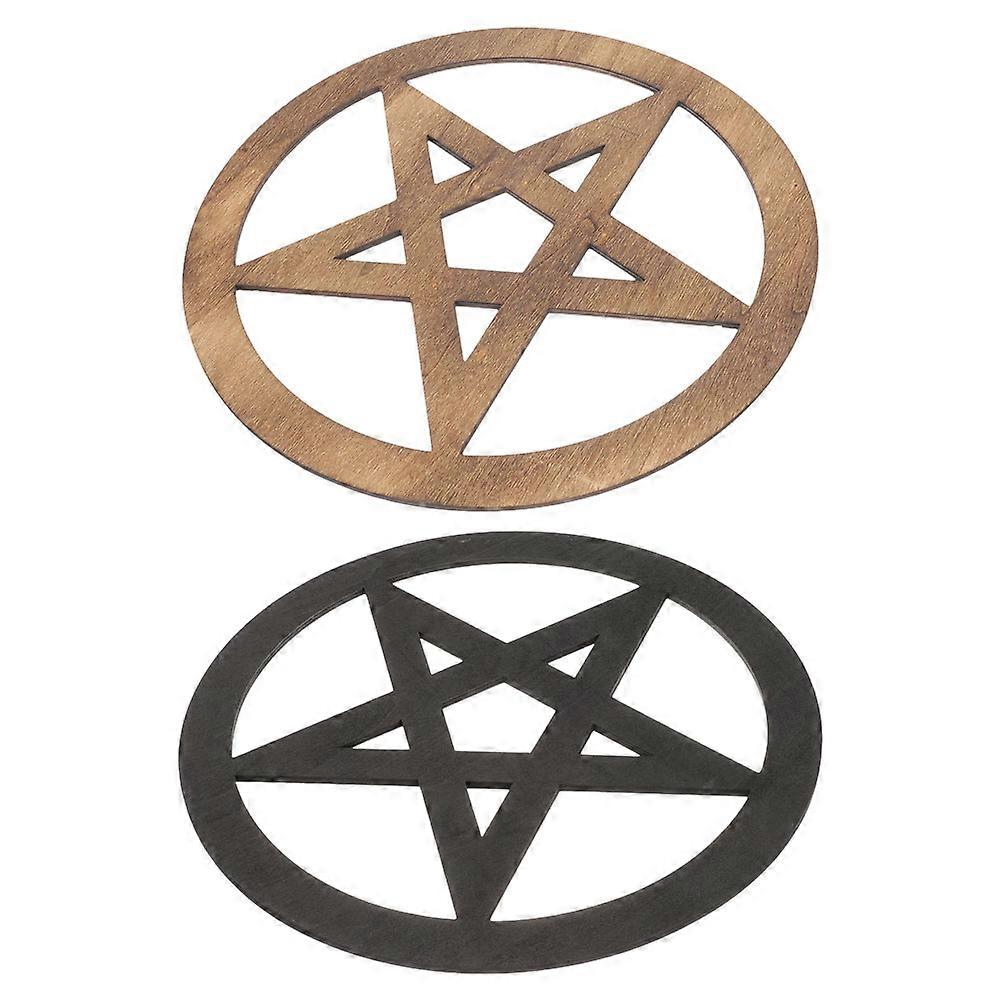 Assorted Color Wooden Pentagram Decor for Home Ritual with 2Pcs Hand Carved Ornaments