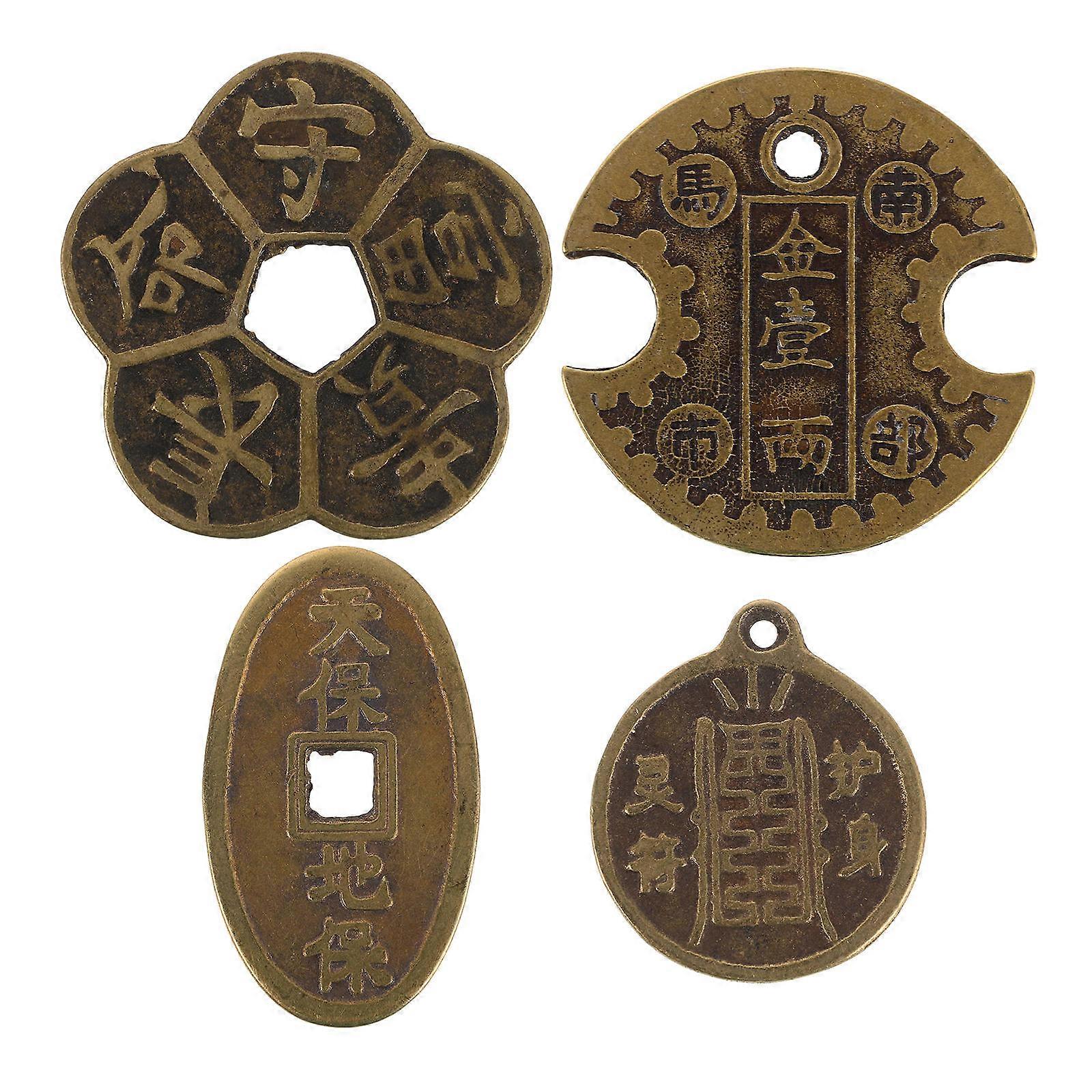 Copper Feng Shui Coins for Success with 4Pcs Lucky I Ching Coins for Display