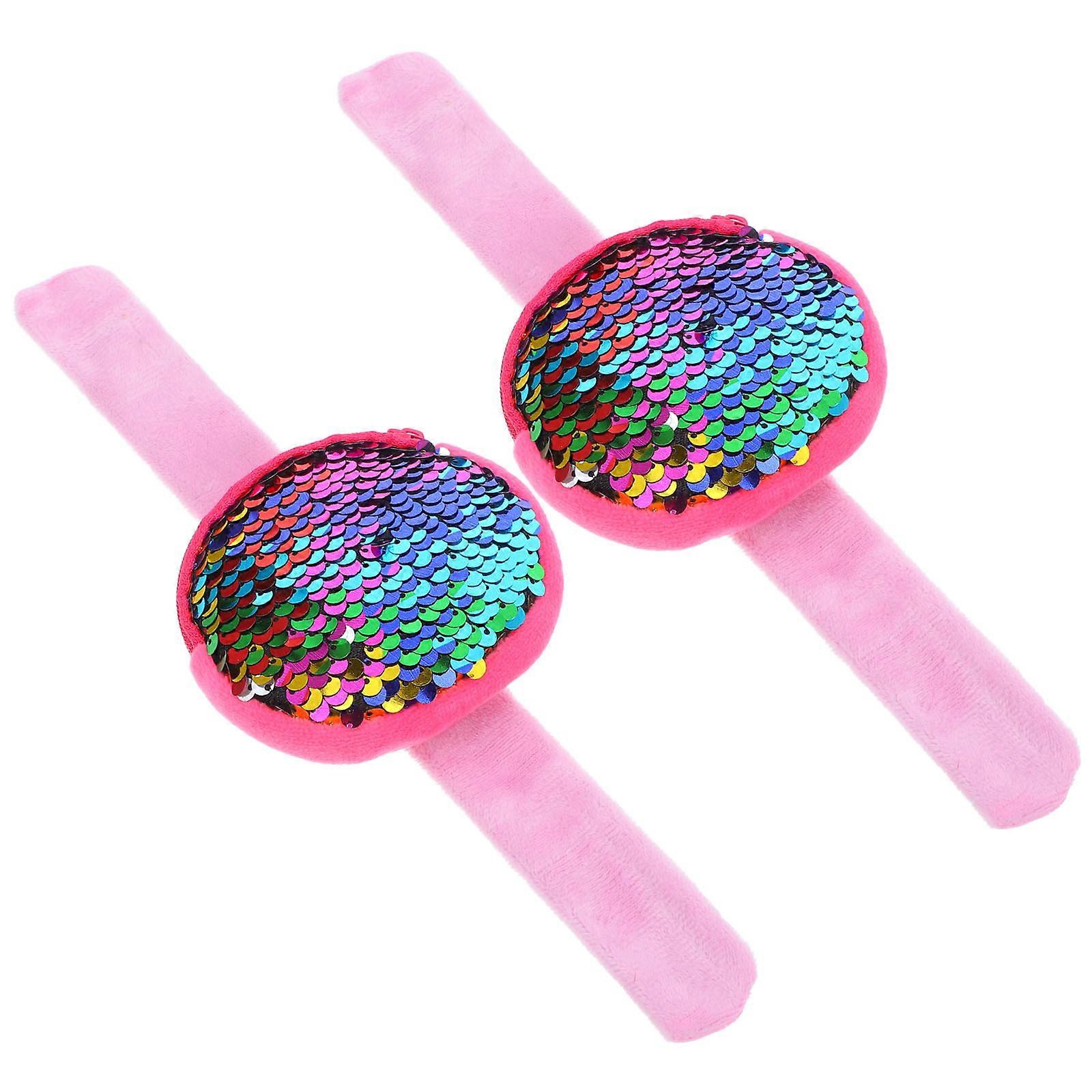 Children's Slap Bracelet Coin Purse for Kids 2Pcs Purple Sequins Accessory