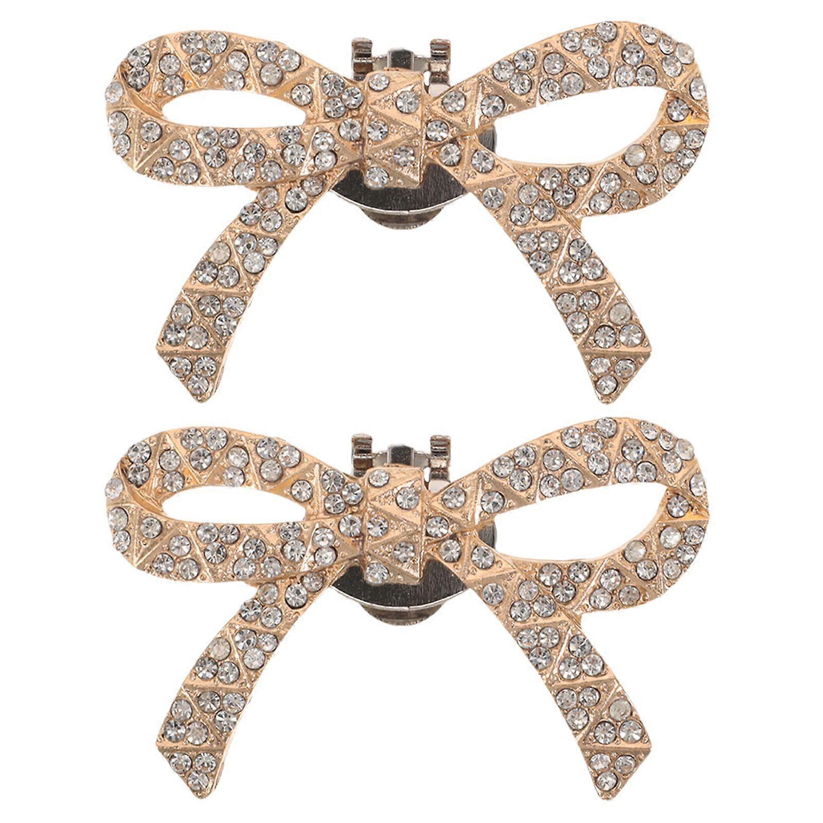 1 Pair Decorative Shoe Clips: Bling Rhinestone Bow Shoe Clips Detachable Golden Bowknot Buckles Accessories for Women Girls Party Prom