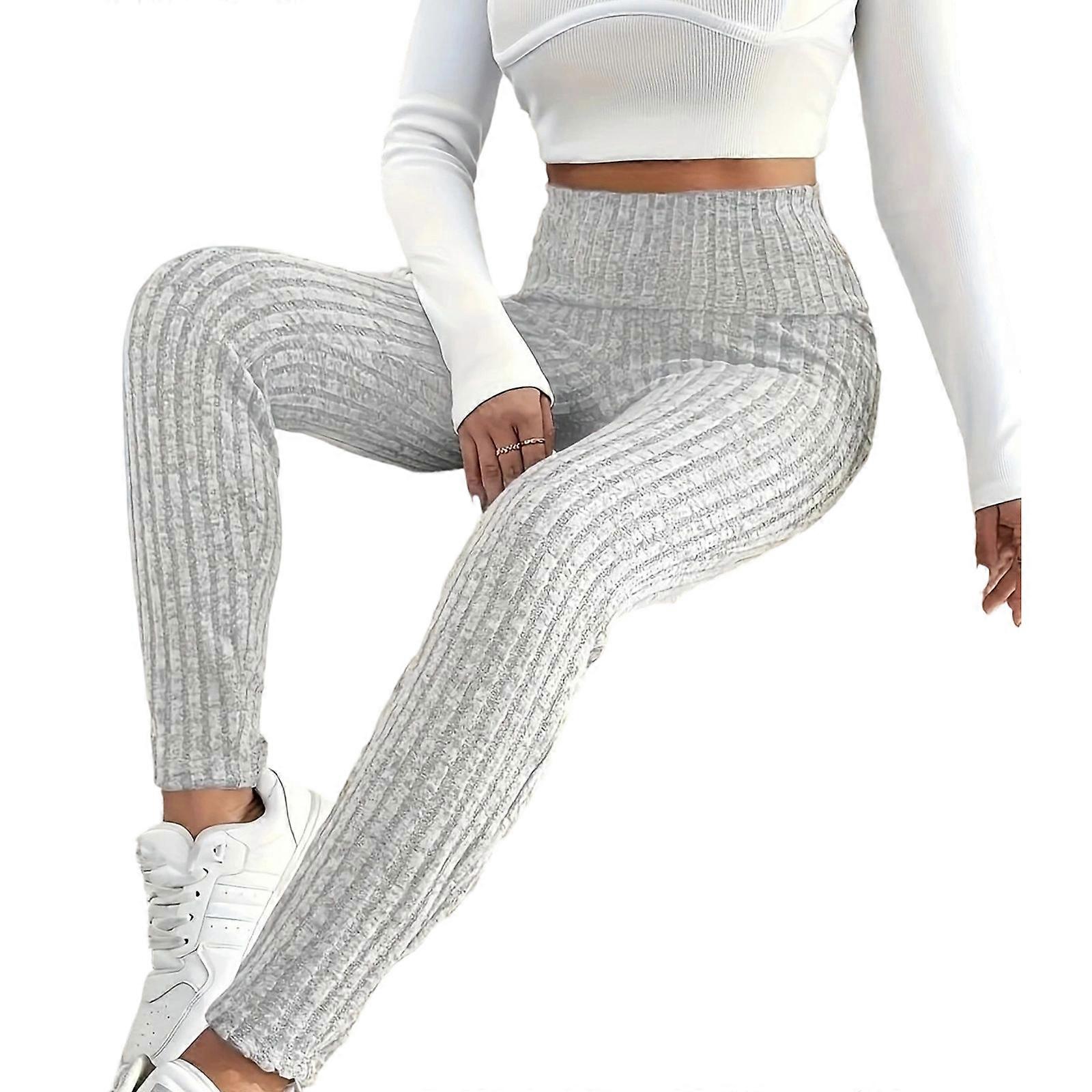 Stylish Women's High Waist Pants Solid Color Breathable Fabric Long Tights for Fitness Gym and Leisure Activity light gray XL
