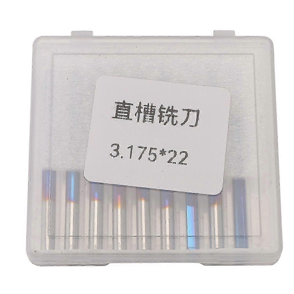 Application: Suitable for processing wood, MDF, acrylic, PVC, EVA, foam, and plywood. Suitable for cutting, engraving, grooving, drilling, positioning, roughing, and milling materials such as MDF, PVC, acrylic, solid wood, particleboard, composite board, organic glass, and core board. High efficiency: These end mills feature sharp edges for fast and efficient machining; durable, high-precision tools that resist breakage; produce minimal smoke and chipping during operation. Size: 3.175 × 22 mm Material: Cemented carbide Color: Blue Package Contents: 10 × Straight End Mills Note: Color may vary slightly due to monitor settings and lighting conditions. Measurement tolerance: ±1–3 mm.