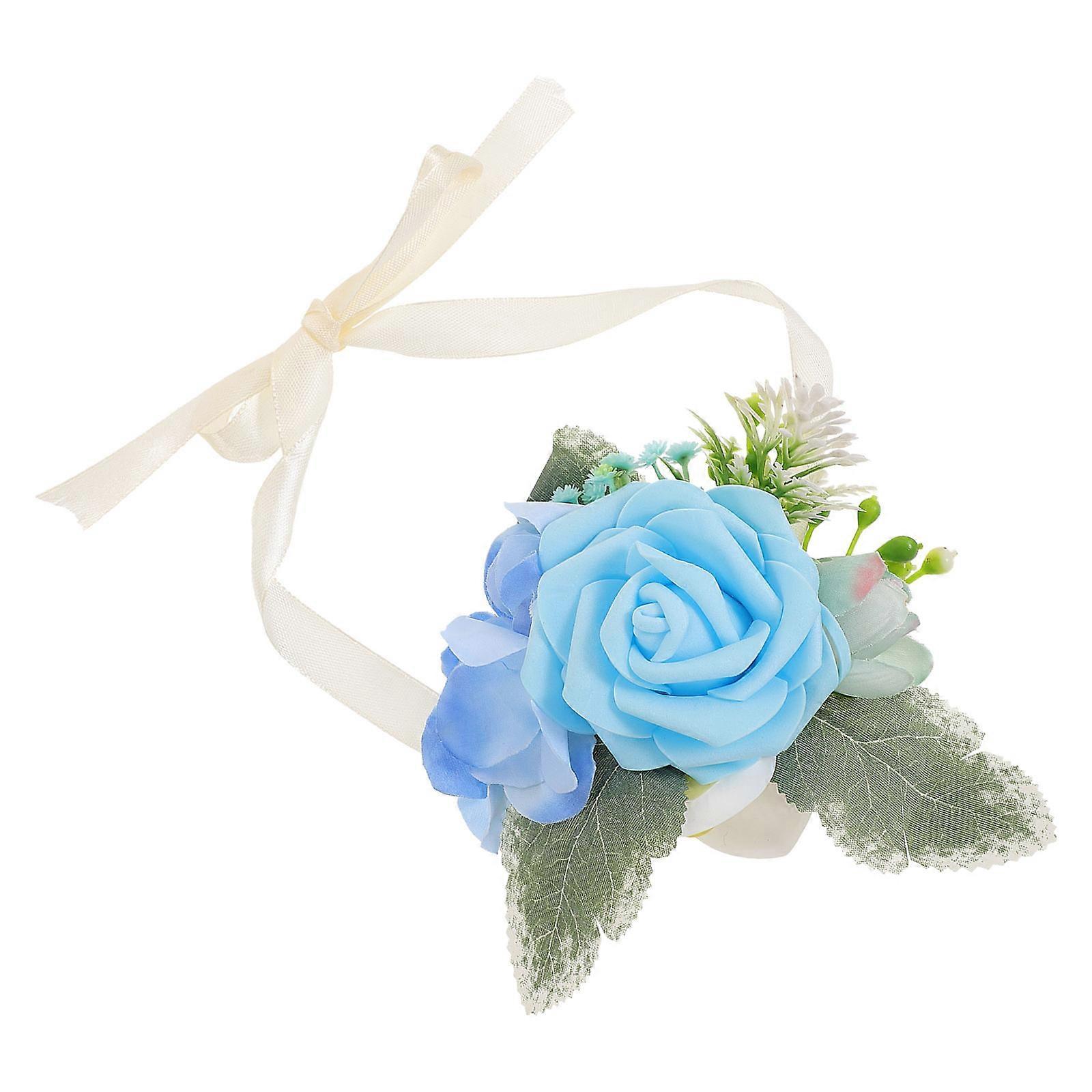 Wedding Wrist Corsage Bracelet Artifical Flower Wristband Elegant Accessory for Bridesmaids Sky-blue 1Set