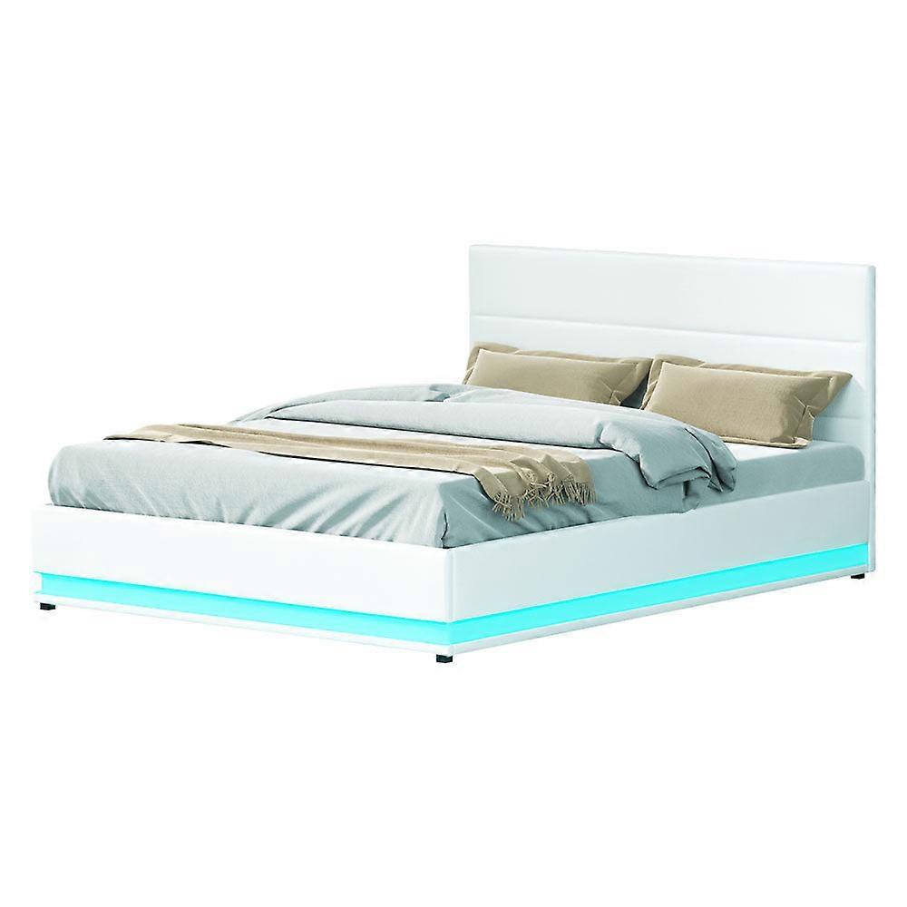 Pvc Leather Queen Bed Frame Gas Lift Storage With Led Lighting White Queen Bed Frames