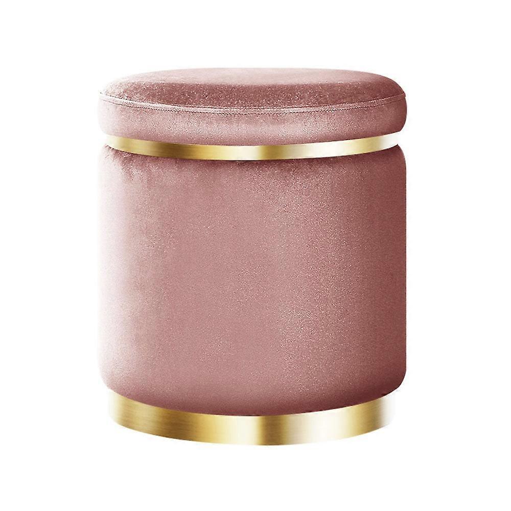 Velvet Ottoman Footstool Round Pink With Stainless Steel Rings Home Furniture Ottomans Footstools & Poufs