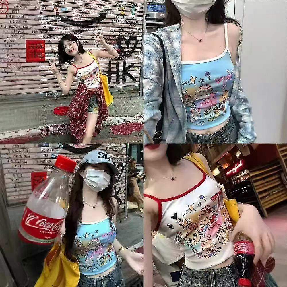 Cute Girl Hello Kitty Vest Sanrio Anime Contrast Color Bow Angel KT Printing Suspenders American Style Hot Girl Slim Short Tops