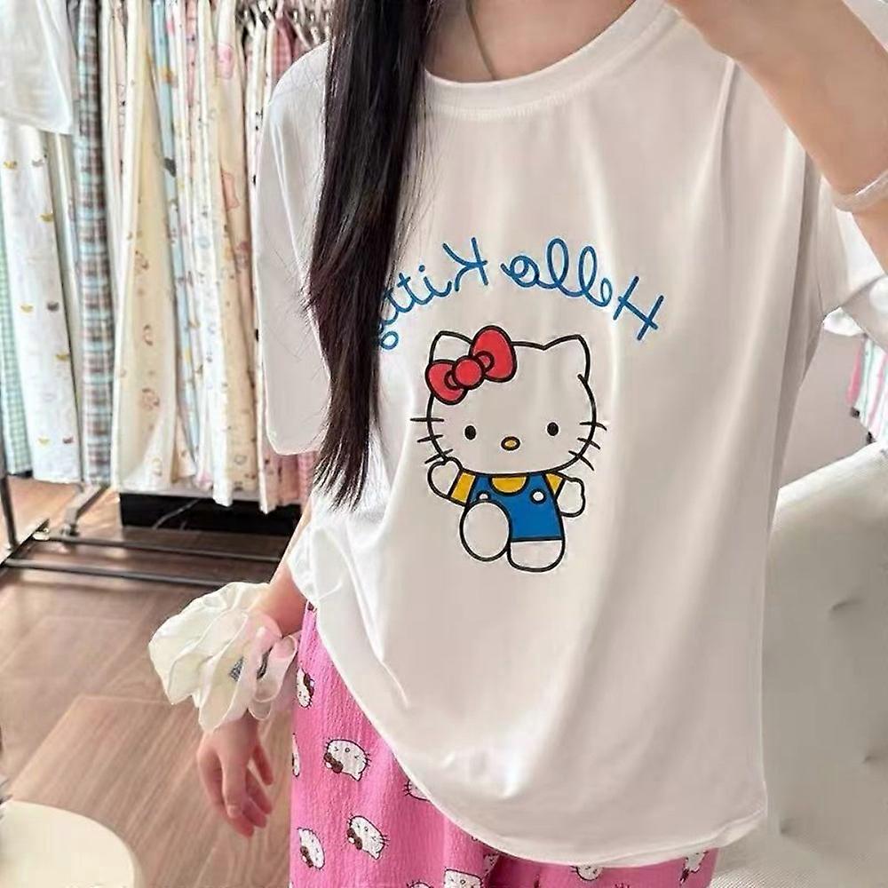 Anime Hello Kitty Pajama Set Women's Cartoon T-shirt Pants Suit Soft Breathable Household Clothes Student Nightwear High Shorts