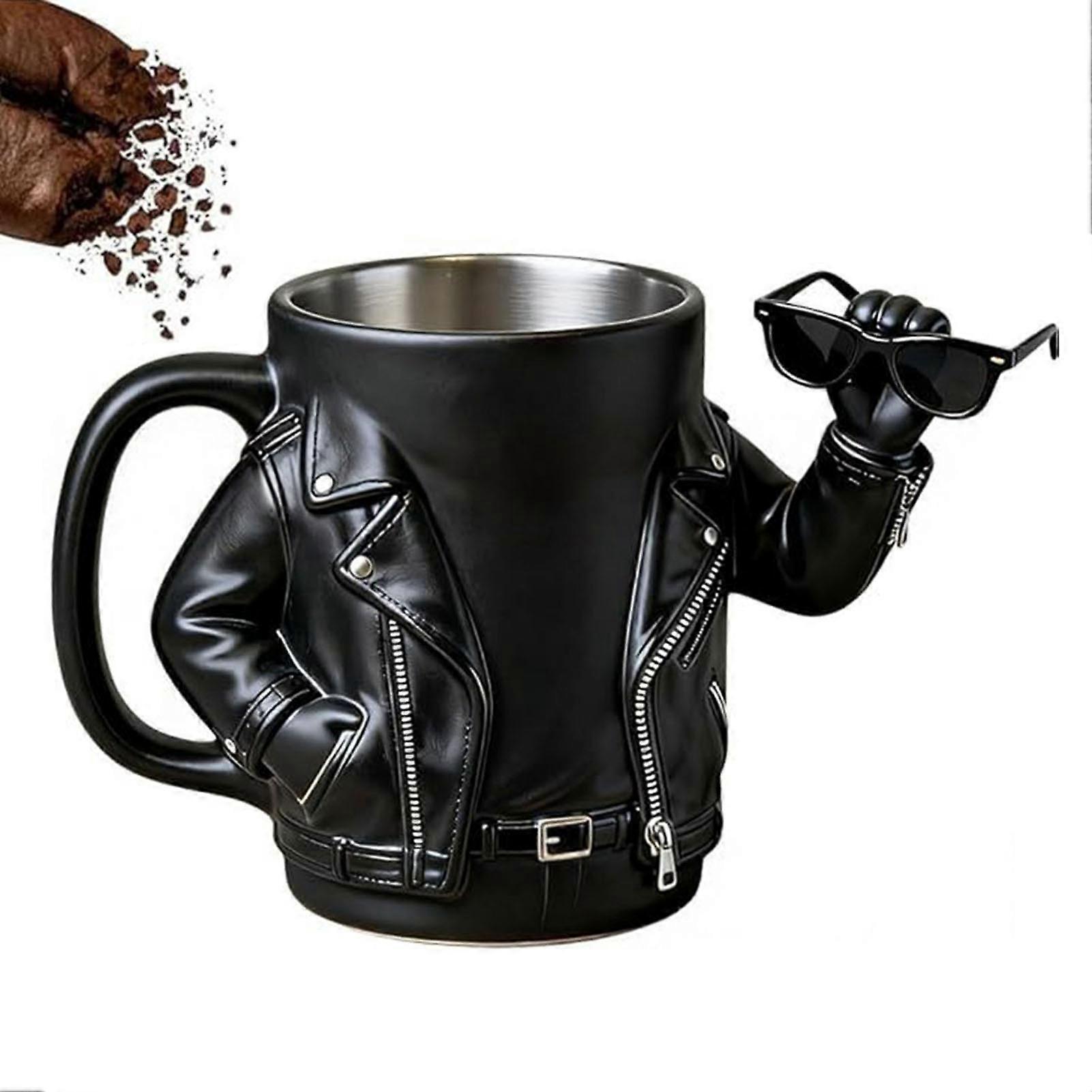 Biker Jacket Coffee Mug – 200ml Stainless Steel Mug, Gift for Men & Motorcycle Fans