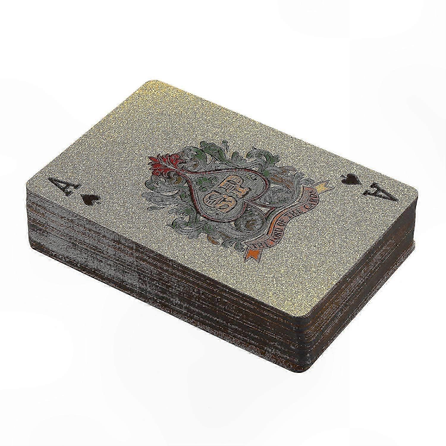 Luxury Gold Foil Poker Playing Cards Deck High-grade gold foil and deep eming treatment on the surface Clear three-dimensional patterns and textured grain create a brilliant gold refraction effect Highly flexible, durable, scratch-resistant, and waterproof; color does not fade Suitable for artistic display and as a gift 52 standard playing cards + 2 jokers Packaged in an attractive golden box Dimensions: approximately 5.7 x 8.8 cm (2.24 x 3.46 in) Color: gold Material: plastic Package includes: 1 deck of playing cards Note: Color may vary slightly due to lighting and screen settings. Measurement tolerance: ±1–3 cm.