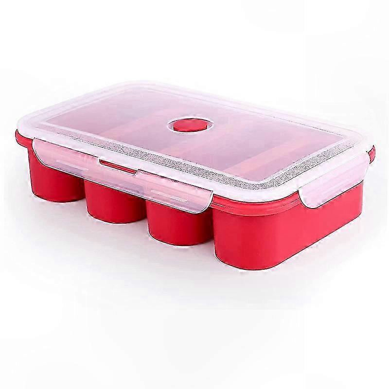 SEALS IN FRESHNESS: Each tray has a 1 cup (250mL) capacity, ideal for bone broth, stew, meal prep, and portion-controlled meals. EASY RELEASE: Non-stick silicone mold allows food cubes to release easily. REMOVABLE LID: Clear, tight-fitting lid helps keep food fresh and prevents absorption of freezer odors. FOOD-GRADE SILICONE: Made from BPA-free, non-toxic, odorless silicone. Free of harmful plastics, cadmium, and lead. EASY TO USE & CLEAN: Safe for freezer, dishwasher, and microwave use. Dimensions: 28 x 17 x 6.3 cm Material: Food-grade silicone Color: Red Package Contents: 1 x Ice Tray Note: Color may vary slightly due to lighting and screen settings. Measurement tolerance: ±1–3 cm.