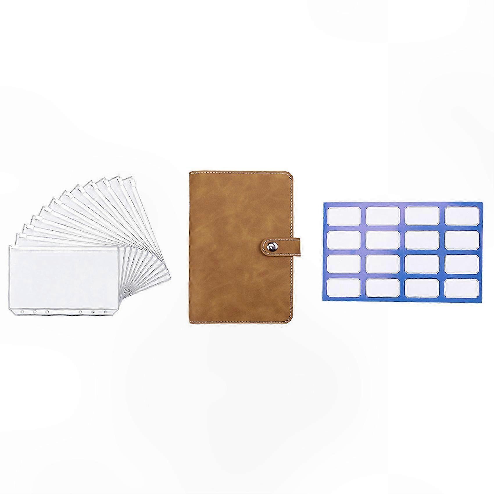 PU Leather Cash Organizer with Zippered Envelopes, Brown Wallet for Vouchers and Planner Notebooks