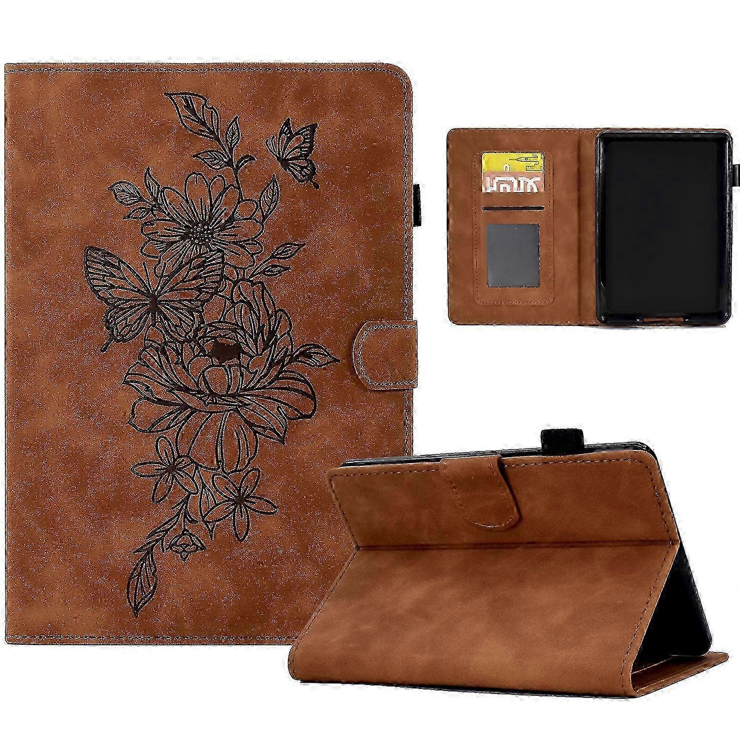 For Kindle Paperwhite 5 Peony Butterfly Embossed Leather Smart Tablet Case 2025