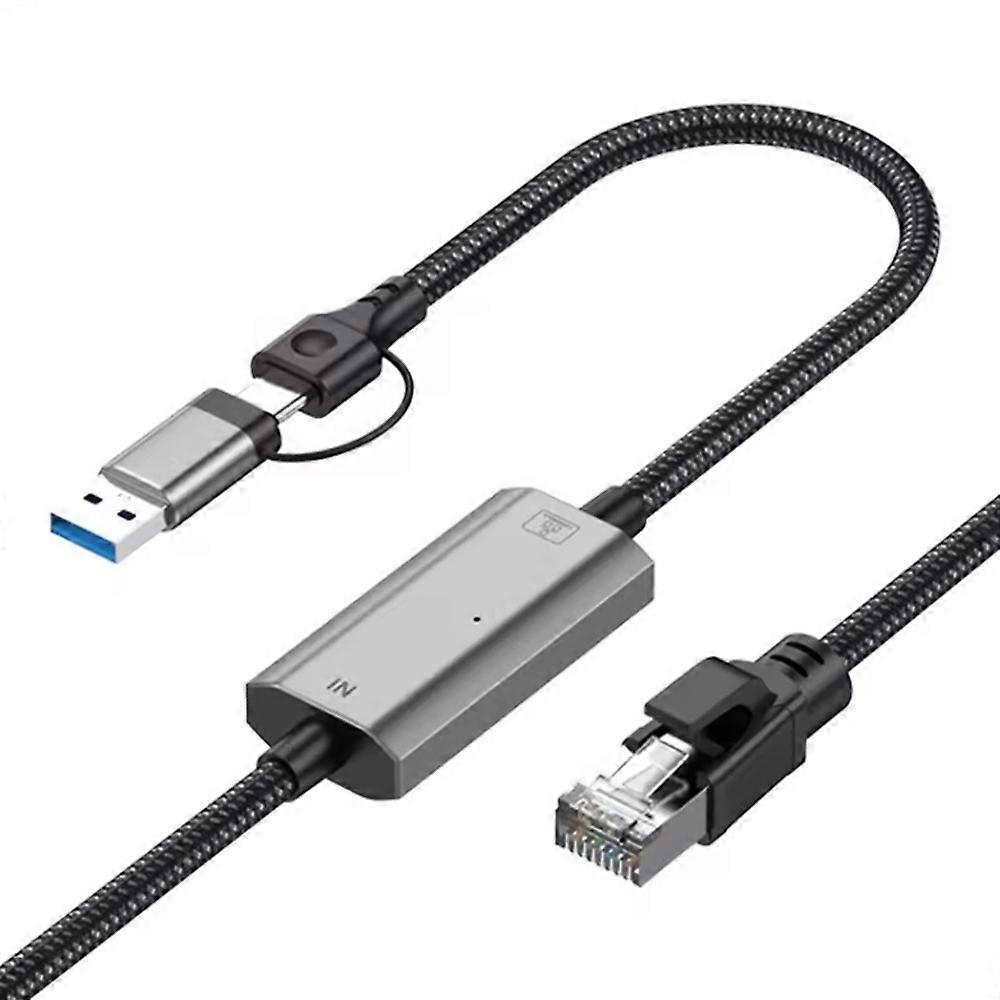・【Convenient 2-in-1 Ethernet Connection】 The USB-C + USB 2-in-1 adapter cable offers a seamless connection between your device and Ethernet network without the need for additional adapters. Just plug and play for instant connectivity. It's also a great solution if your computer's RJ45 port is damaged. (Note: This cable does not provide power; it only delivers network signals, not a console cable.) ・【High-Speed Data Transfer】 Supporting up to 1000Mbps, 100Mbps, and 10Mbps data transfer speeds, this Ethernet adapter ensures stable, high-speed internet connections for smooth browsing, streaming, and gaming. (For 1Gbps speed, ensure your USB port is 3.0 or higher.) ・【Wide Compatibility】 This versatile Ethernet cable is compatible with a wide range of devices, compatible with MacBook Pro, MacBook Air, Dell XPS, iPad Pro, iPhone 15 series, Galaxy S24, Google Pixelbook, Surface Book, and other devices with a USB Type-C port. ・【Compact & Durable Design】 The compact, nylon-braided USB-C + USB 2-in-1 cable is designed for portability and durability. It saves space and reduces stress on your device’s USB-C port, making it perfect for travel, streaming, gaming, or working from home. ・【Reliable Network Connection】 Ideal for connecting your tablet, laptop, or smartphone to a modem, router, or network switch, this Ethernet adapter provides a stable, high-performance network connection. Specifications: ・Cable Length: 200cm/78.74 inches ・Ethernet Speed: Up to 1000Mbps (Gigabit) ・Connector Types: USB-C, USB-A, RJ45 ・Compatibility: Devices with USB-C or USB-A ports ・Data Transfer Speeds: 1000Mbps/100Mbps/10Mbps ・Cable Material: Nylon braided ・Plug and Play: Yes ・Power Delivery: No (network signal only) Package included: ・1 x RJ45 Cable ・Other items not included