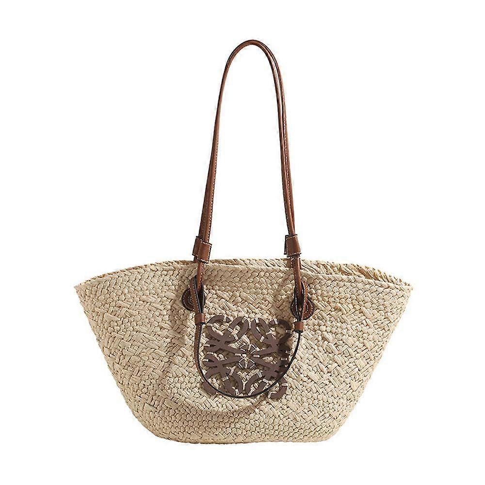 Large Capacity Handwoven Grass Straw Bag - Women Beach Handbag - White