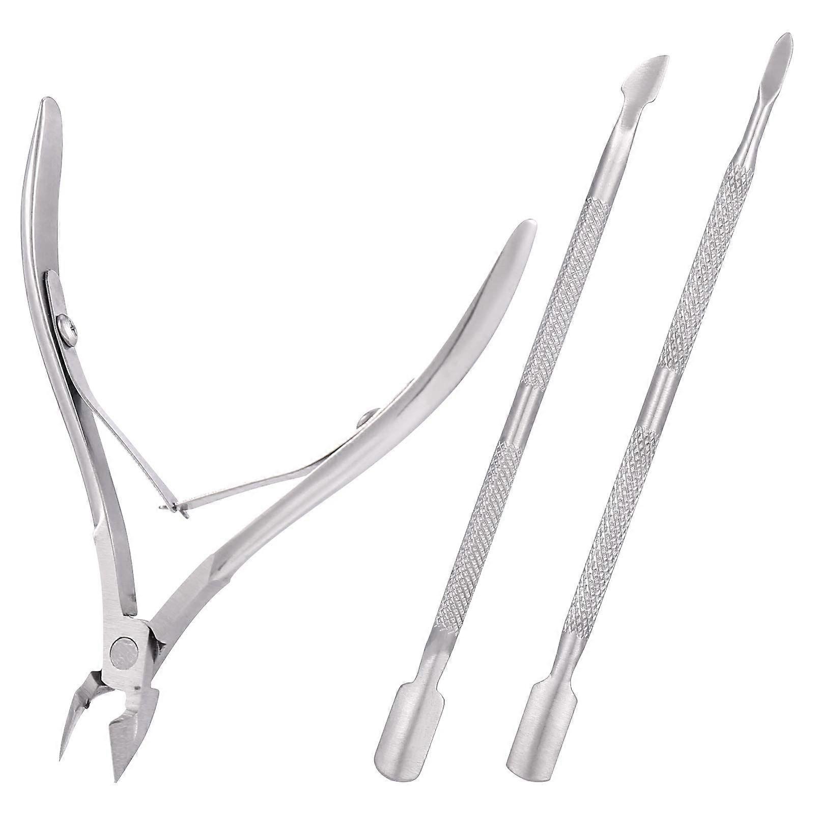 3 Pcs Cuticle Care Kit - Cuticle Nippers, Pushers and Steel File, Stainless Steel Cuticle Clipper Dead Skin Scissors Manicure Pedicure Tools