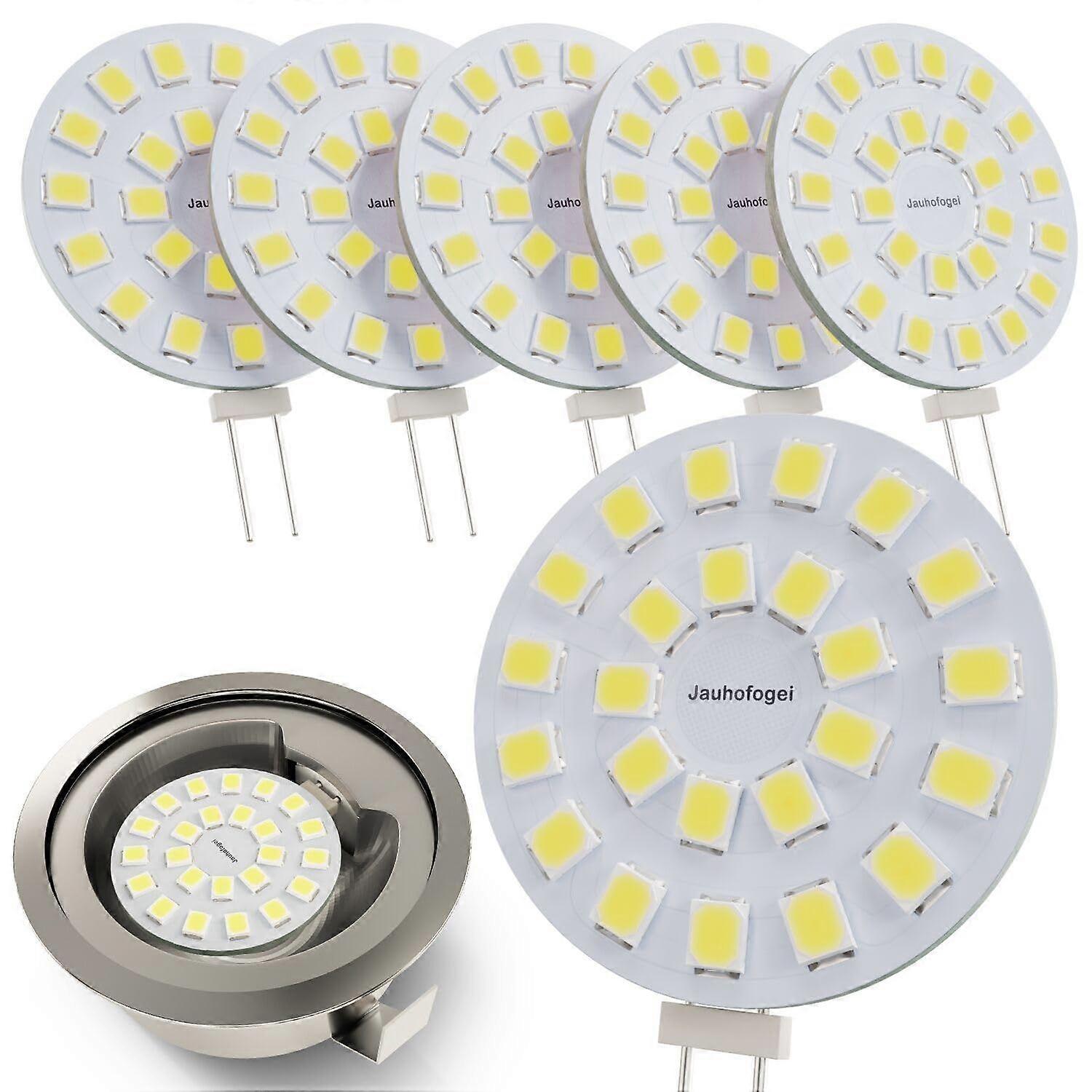 G4 LED Bulb 2W 12V Cool White 6000K, JC G4 20W Halogen Equivalent, Round Recessed Spotlight, Daylight Non-Dimmable, Pack of 6
