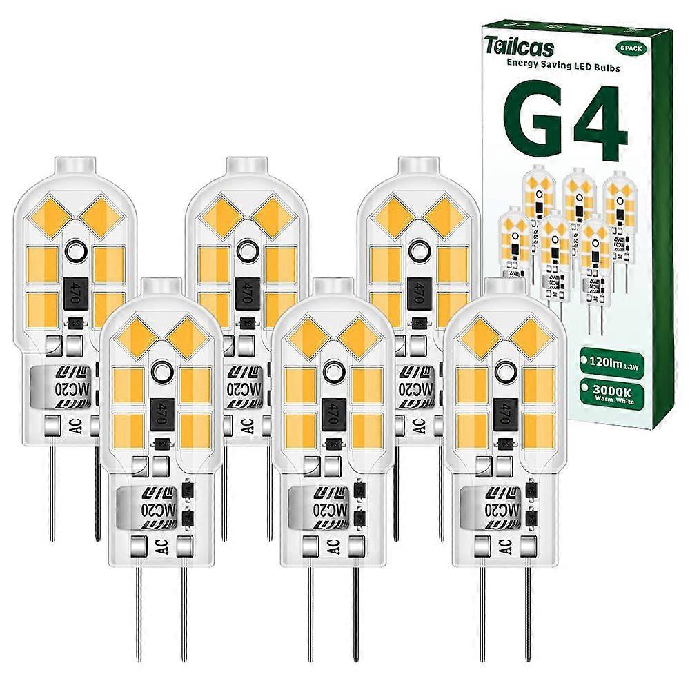 G4 LED Bulbs, 6-Pack 1.2W Equivalent to 10W 20W Halogen Lamp, AC/DC 12V 3000K 120lm 12.1 x 36.4mm Non-Dimmable No Flicker (Warm White)