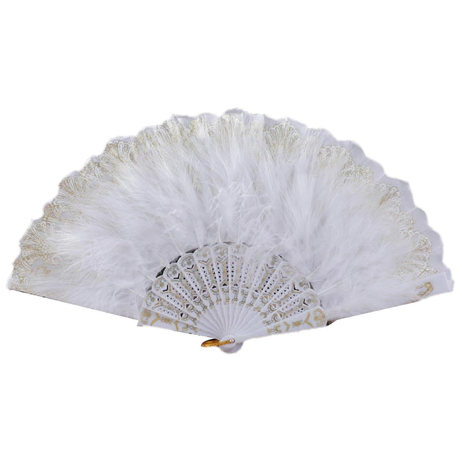 1920s Style Feather Folding Fan with Lace Design for Weddings, Halloween and Themed Events