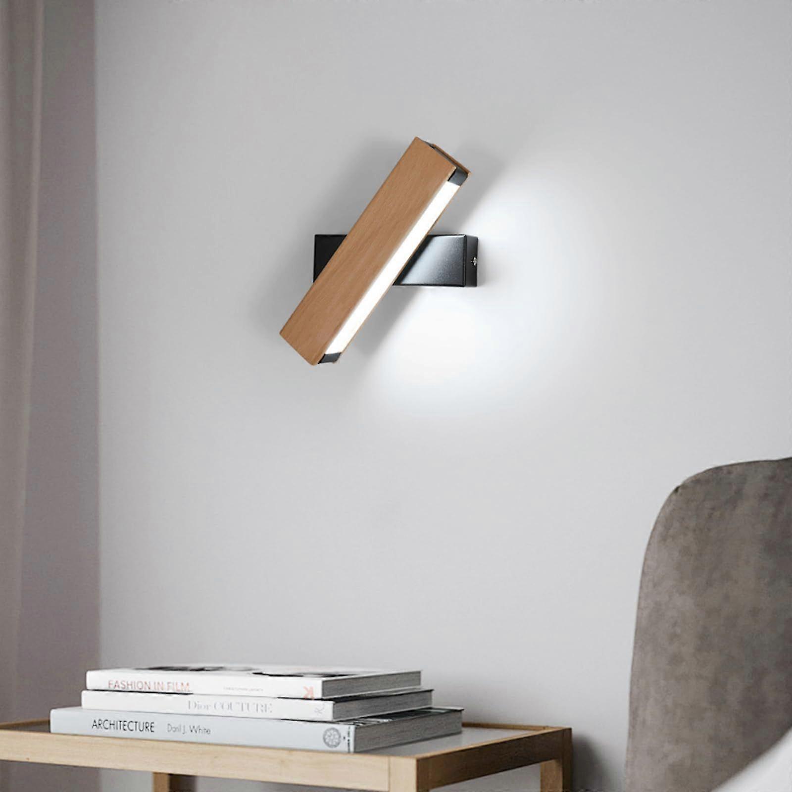 LED Wall Light Indoor, Modern Wooden Wall Lamp 360 Rotatable 6500K Cool White Light, Creative Wall Sconce