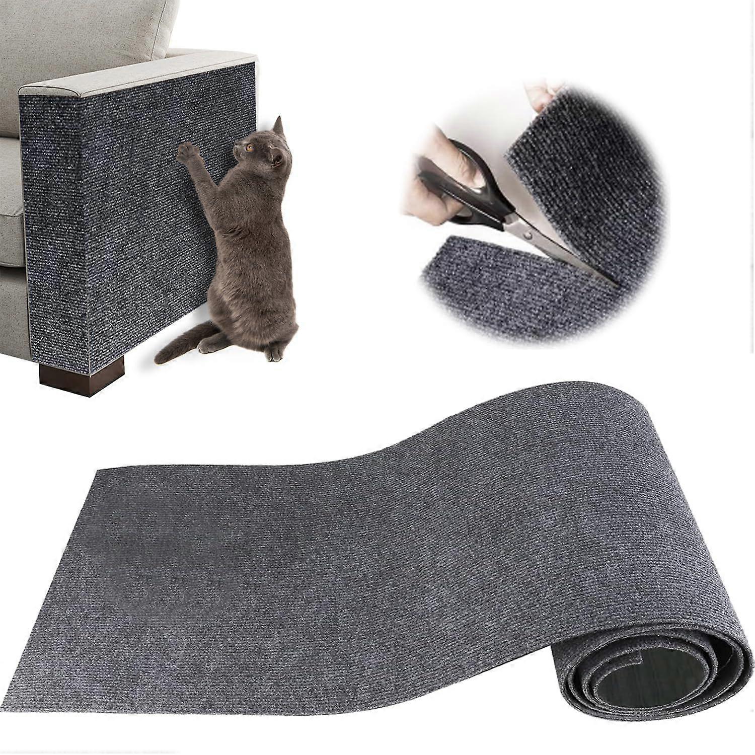 【Self-adhesive design】The surface of our self-adhesive cat scratching mat is made of eco-friendly non-woven fabric and durable polyester fiber, providing excellent wear resistance and scratch resistance. It satisfies cats' natural scratching instinct while effectively protecting your furniture. Its back is designed with 100% self-adhesive material, ensuring a strong attachment to various surfaces (sofa, wall, door, etc.). Easy to install, it leaves no residue when removed, thus preserving the aesthetics of your furniture. 【DIY cutting and exceptional adaptability】With its dimensions of 30 x 100 cm, this cat scratching post can be cut to size to perfectly fit your needs. Whether it's for a sofa, bed, table, or cat tree, it can be cut and even assembled to cover larger areas. Its flexible design allows for seamless integration with different types of furniture and cat accessories. 【Effective Furniture Protection】Our Cat Scratcher Sofa Protector is an ideal solution for preventing damage caused by scratching. It can be applied to the sides and legs of furniture, protecting your sofas, chairs, walls, and other vulnerable surfaces. By providing a dedicated scratching area, it helps divert your cat's attention from fragile surfaces, extending the life of your furniture. 【Quick and Easy Installation】Thanks to its strong adhesive, this cat scratcher sofa can be installed in seconds: simply clean the surface, remove the protective film, and apply the mat to the desired location. Its sturdy grip ensures a stable hold, while allowing easy removal without damaging your furniture. 【Reusable and Eco-Friendly】Designed to last, this mat is reusable and easy to clean, making it an economical and environmentally friendly option. Unlike traditional cardboard scratching posts that need to be replaced often, this model is designed for extended use, reducing waste and environmental impact. A sustainable and practical solution to ensure your cat's well-being while maintaining a tidy home.