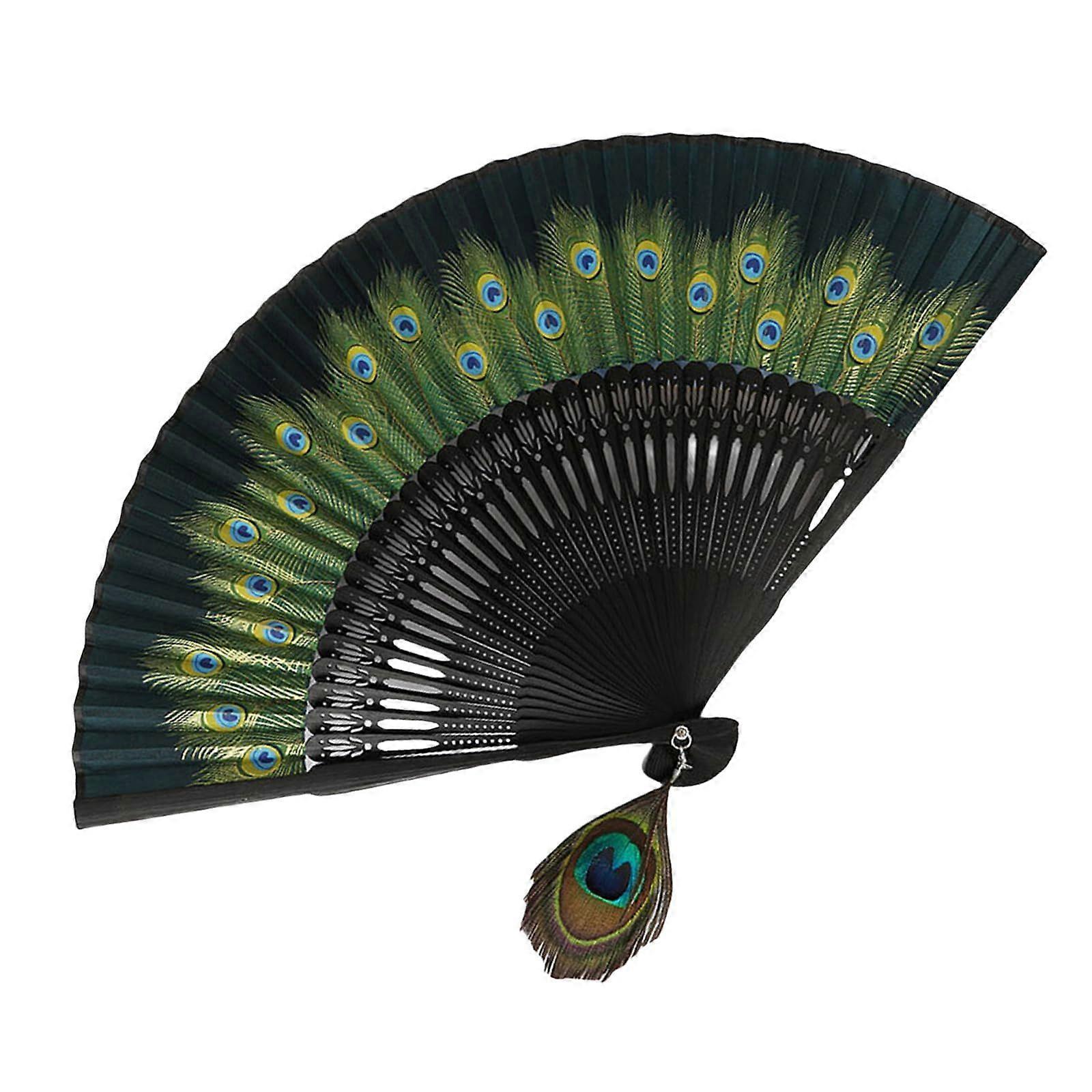 Vintage Wooden Folding Fan with Feather Pattern for Home Decoration and Dance Parties