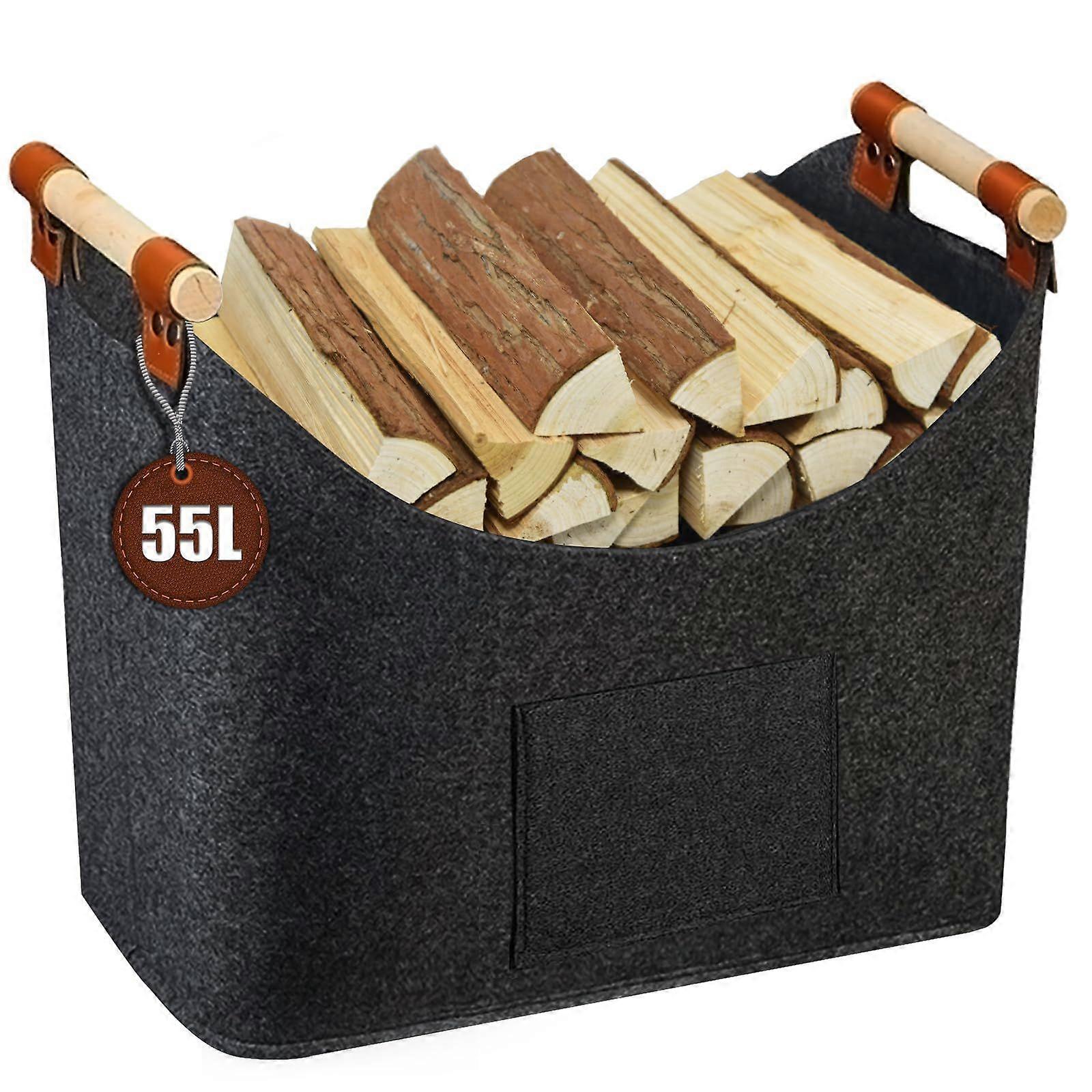 Extra large volume: 55 x 42 x 30 cm (L x W x H), it can hold up to 55 litres of filling, which is 20% more than other felt bags. It offers plenty of space for firewood in the basket and can hold more items than the hard basket. The thickness of the reinforcement is about 5mm and can hold up to 50kg Practical design: the felt bag comes with two removable wooden handles and hardness for easy carrying. There is also a small pocket on the side of the basket for gloves, firewood, mobile phones, accessories, etc. It is very convenient Multifunctional storage: It can be used not only as a wooden basket, but also as a storage bag and shopping bag. It can put toys, newspapers, books, clothes and other objects at home, and is also suitable for carrying heavy objects when camping, picnic, campervan, etc. Foldable and Portable: The felt basket has a foldable design that allows it to be folded in seconds when not in use and stored for transport. When reused, it can be folded with an iron. Easy to carry: Unlike traditional baskets, wood can be easily transported in a felt basket without leaving debris or batteries on the floor. At the same time, the soft felt bag prevents sharp wood from coming into direct contact with the floor, thus protecting the wood or laminate floor from scratches.