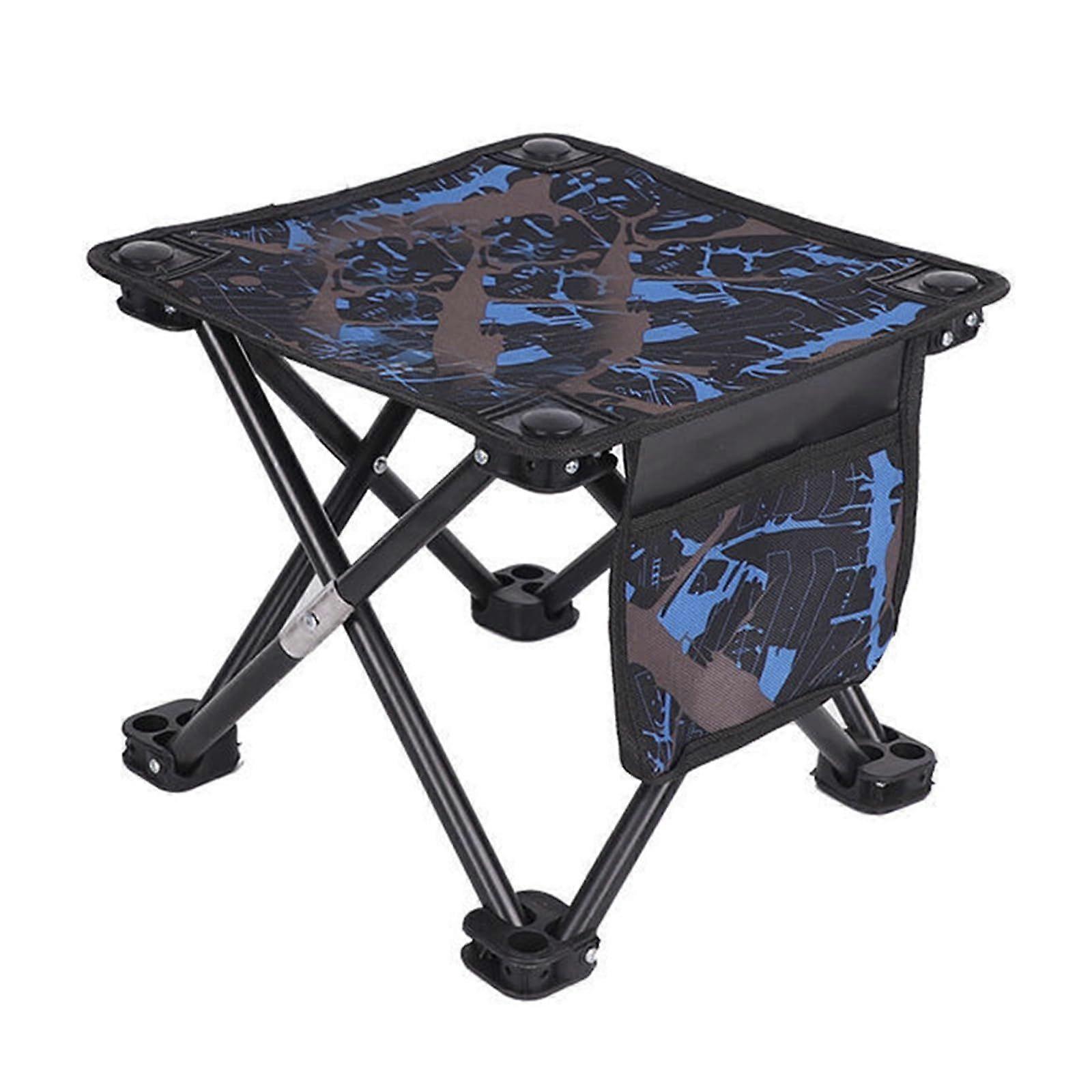 Portable Folding Camping Stool - Comfortable Seat - Small Camping Stool, Hiking, Fishing Gear, Foldable Picnic, Blue camouflage