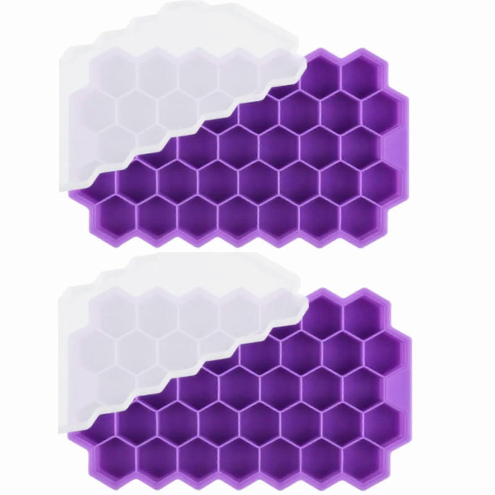 2 Pieces Ice Tray, Ice Tray with Lid Silicone Ice Tray Anti-Spill, Flexible Ice Tray Mold Small Ice Tray (37 Hexagon Purple)