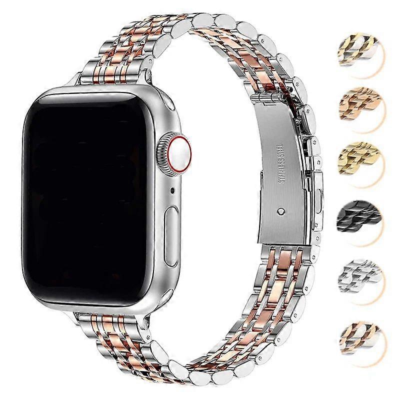 Ultra-thin Metal Band Compatible with Apple Watch Band 42mm (Series 10) 41mm 40mm 38mm, Elegant Stainless Steel Link Band (Rose Gold/Silver)