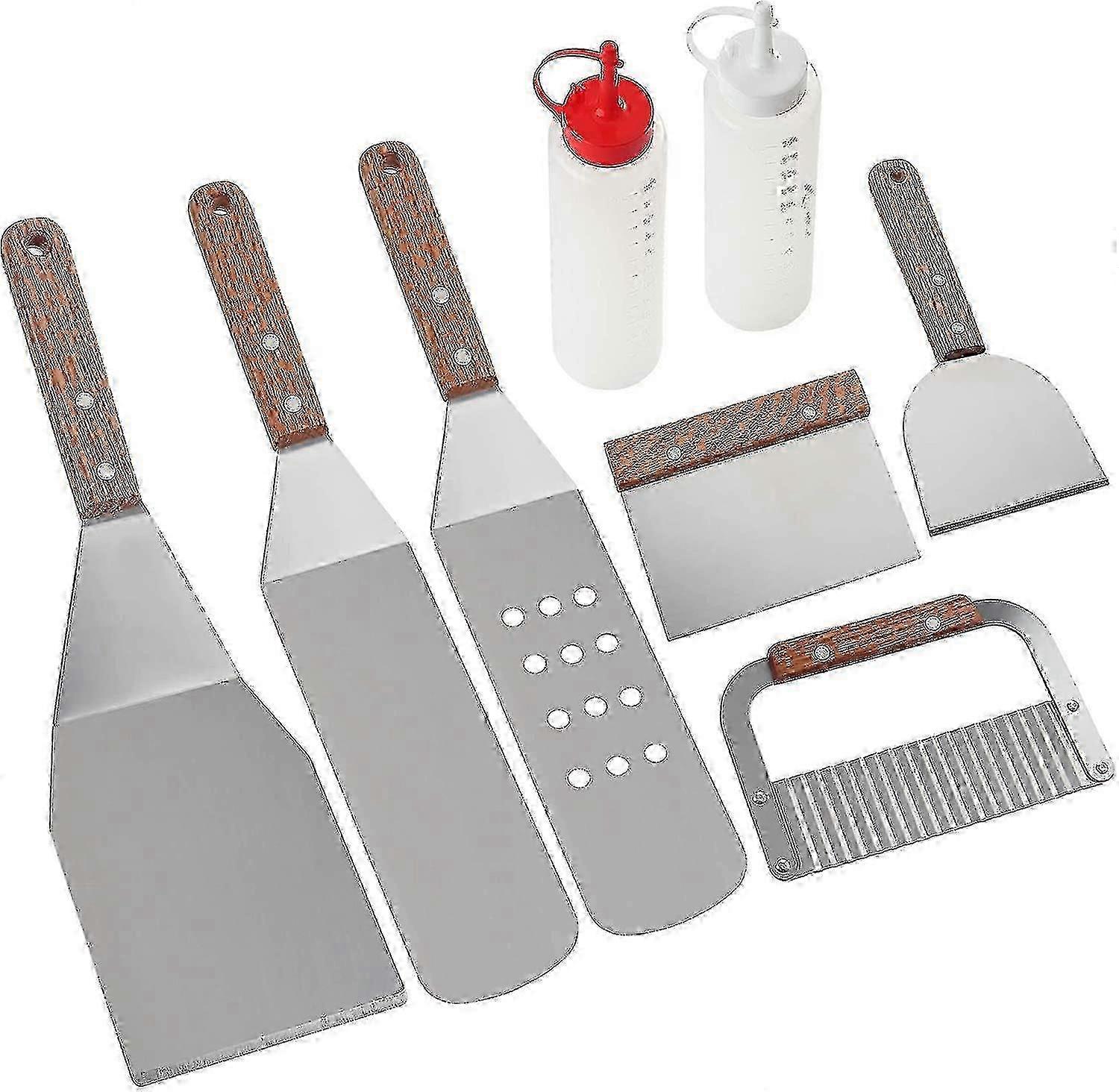 8pcs Bbq Accessories Kit - Professional Heavy Duty Stainless Steel Bbq Spatulas - Ideal For Teppanyaki, Grilling And Griddles - JA 25-26s