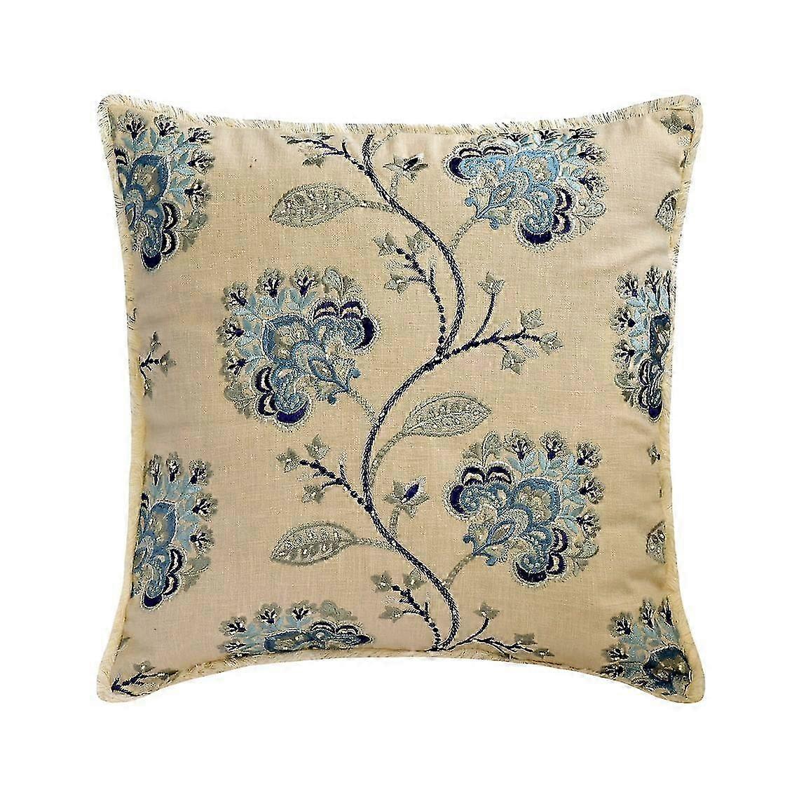 Custom Blue 12"x12" Linen Pillow Case, Floral & Pearl Embroidery Throw Cover for Sofa, Nature Pattern - Morning Flower 25-26s